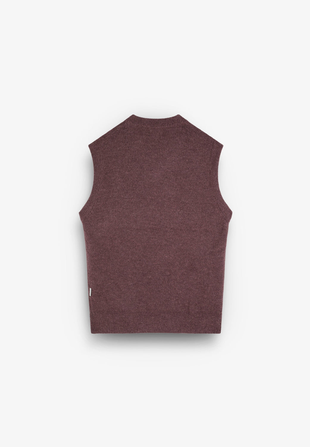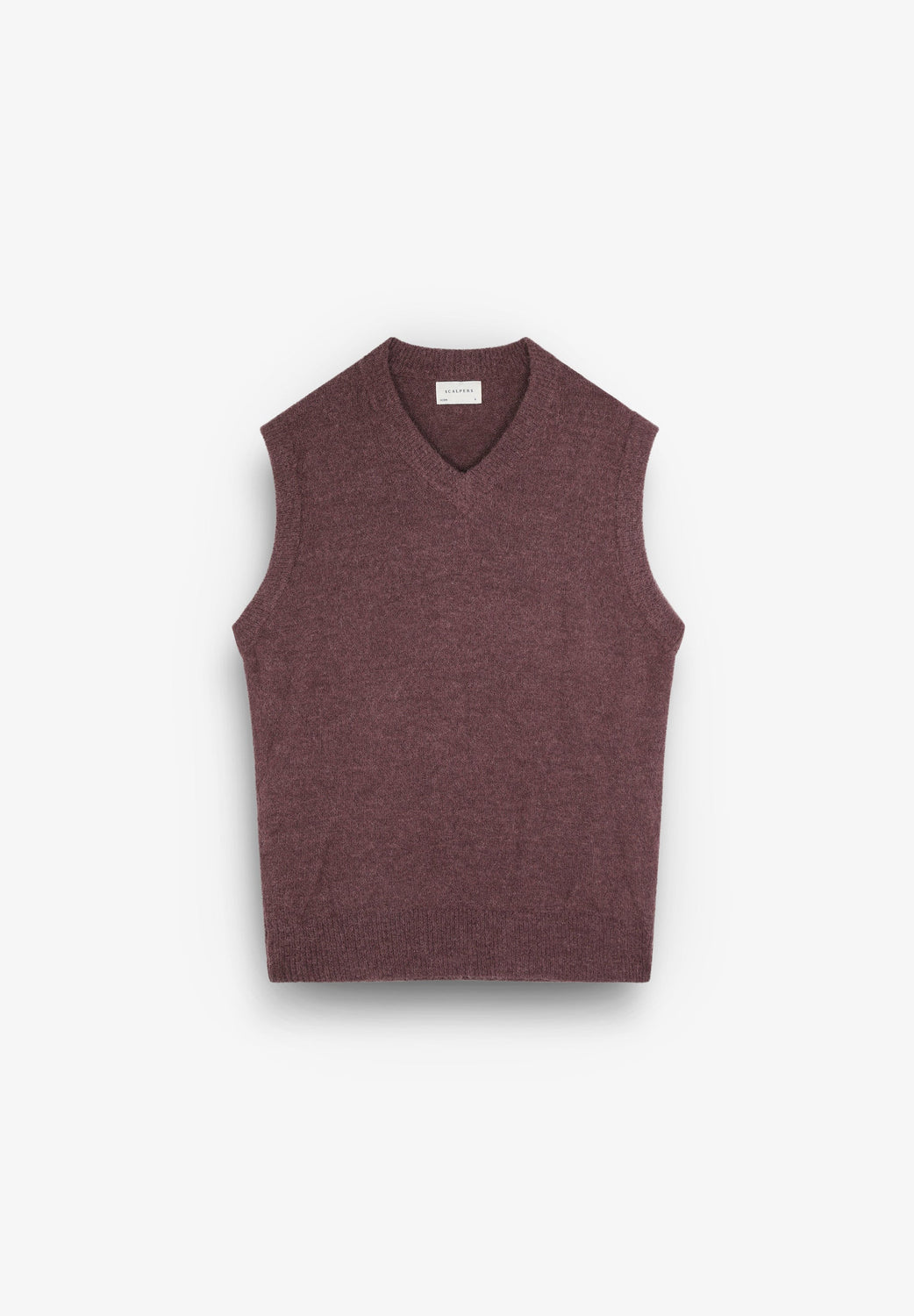 Chaleco premium confeccionado en mezcla de lana y alpaca. Regular fit, cuello de pico y manga en sisa.