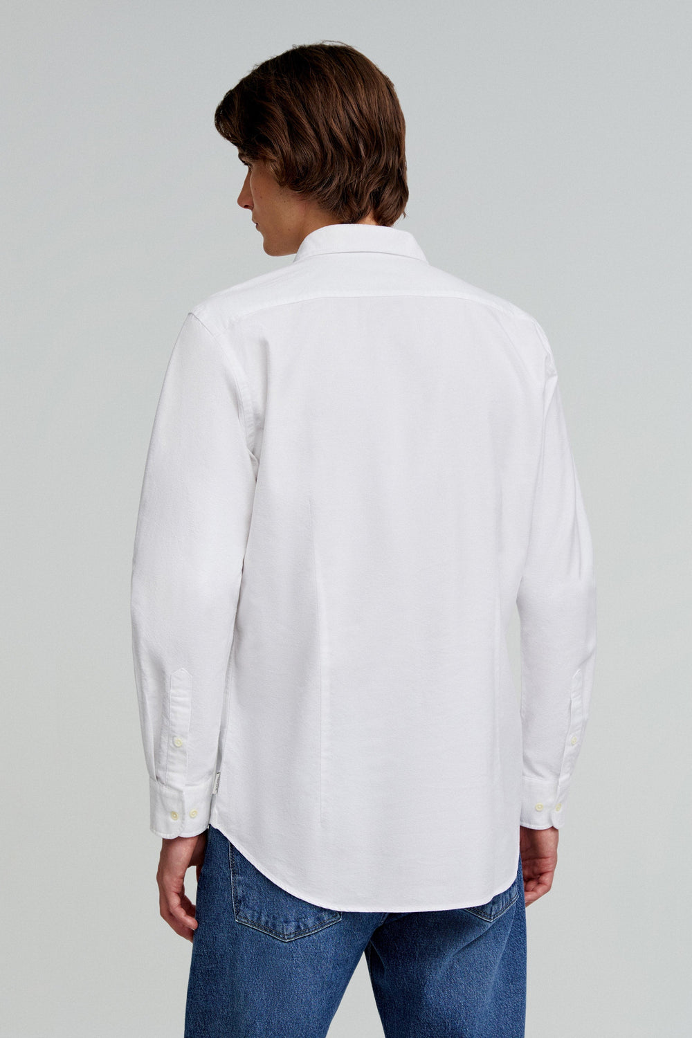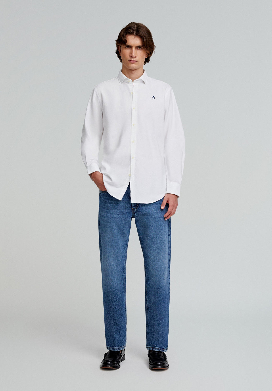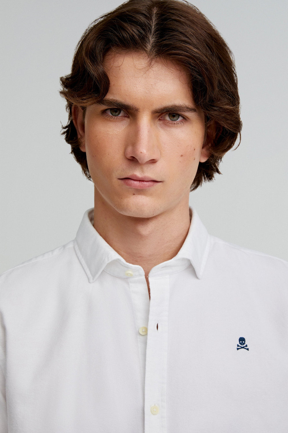 Camisa oxford confeccionada en 100% algodón. Regular fit, cuello italiano y cierre con botones. Manga larga terminada en puño con botones y calavera a contraste.