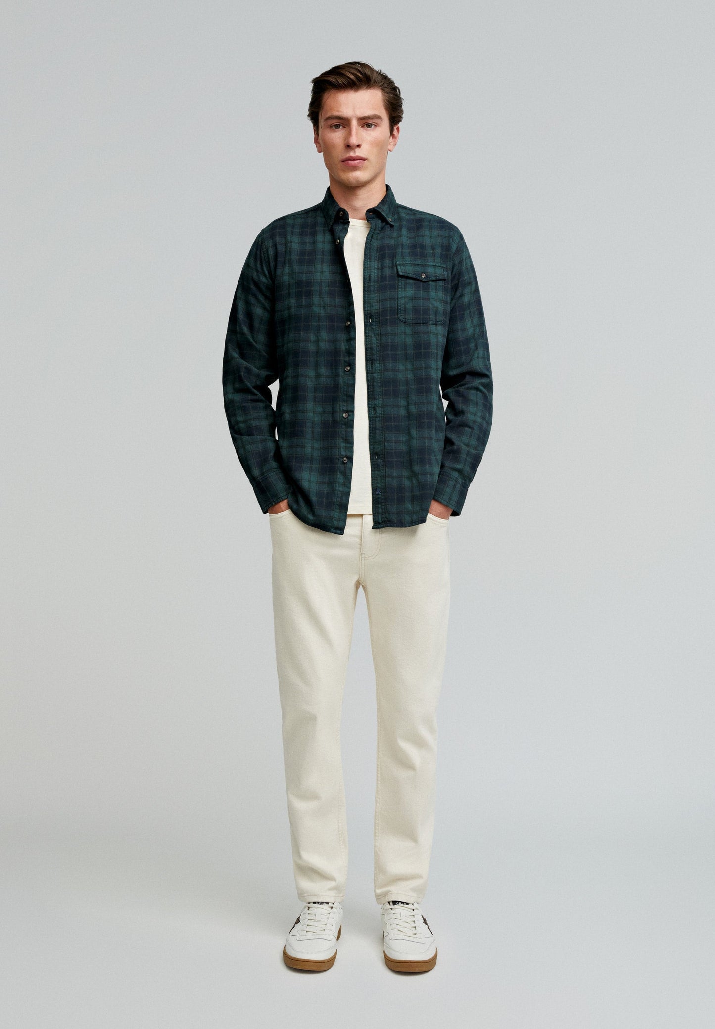 CAMISA CUADROS TARTÁN BOLSILLO TAPETA