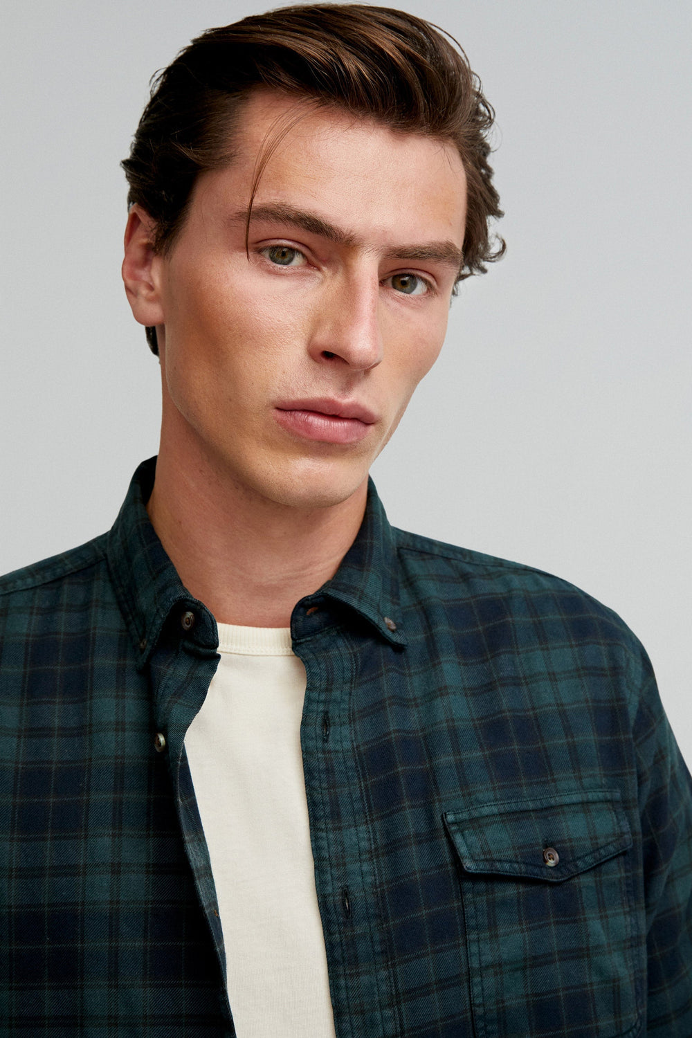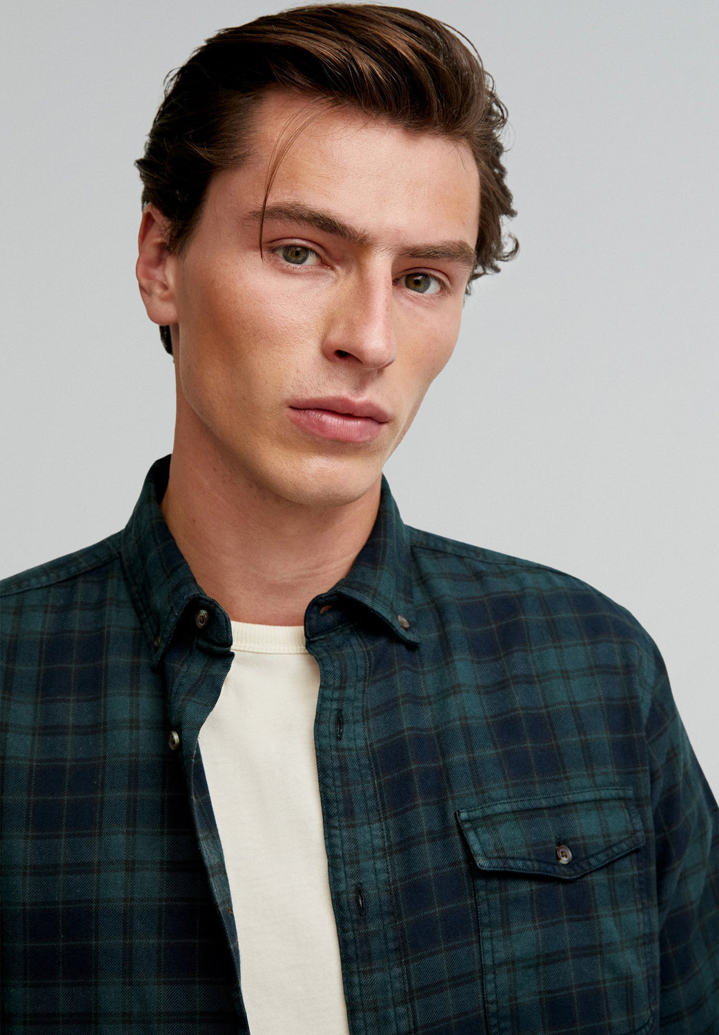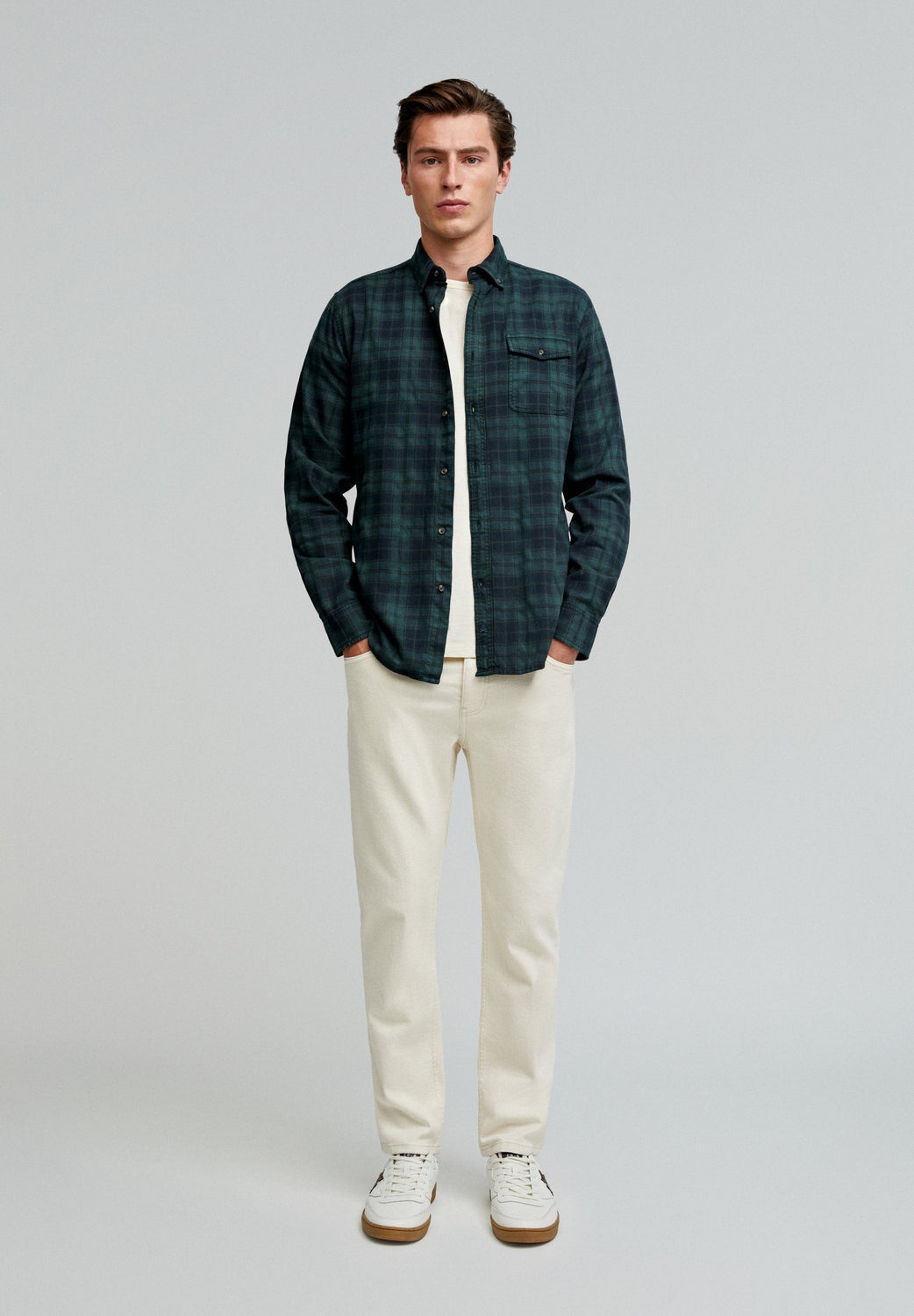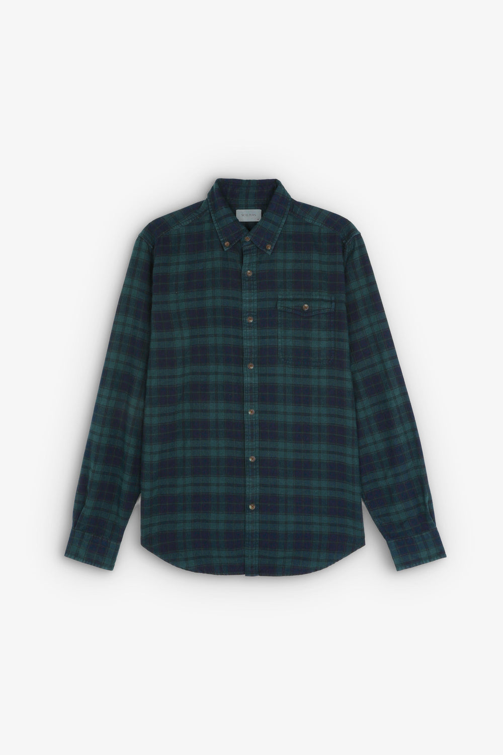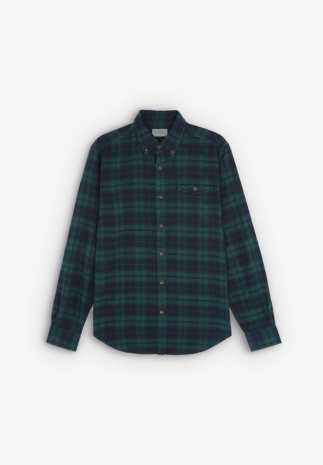 Camisa de cuadros tartán confeccionada en mezcla de algodón BCI. Regular fit, cuello con botones y cierre con botones. Manga larga terminada en puño con botones y bolsillo en pecho con tapeta y botón.