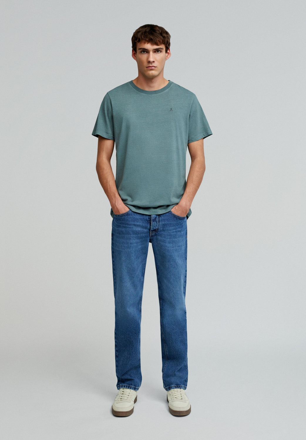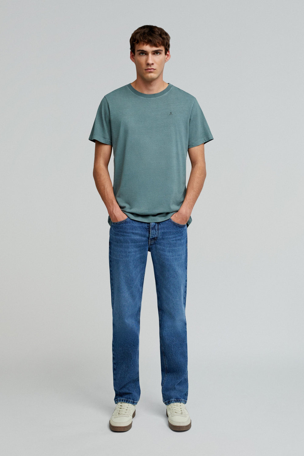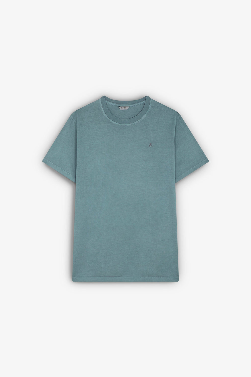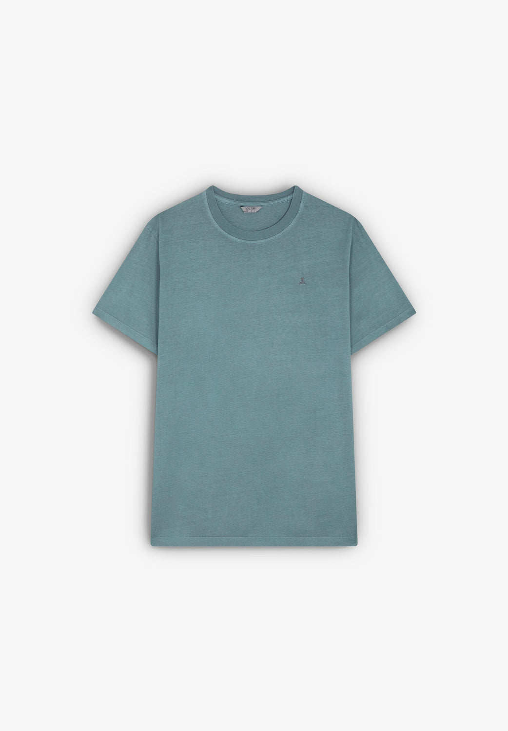 Camiseta lavada confeccionada en 100% algodón BCI. Regular fit, cuello redondo y manga corta. Detalle de calavera bordada a tono,