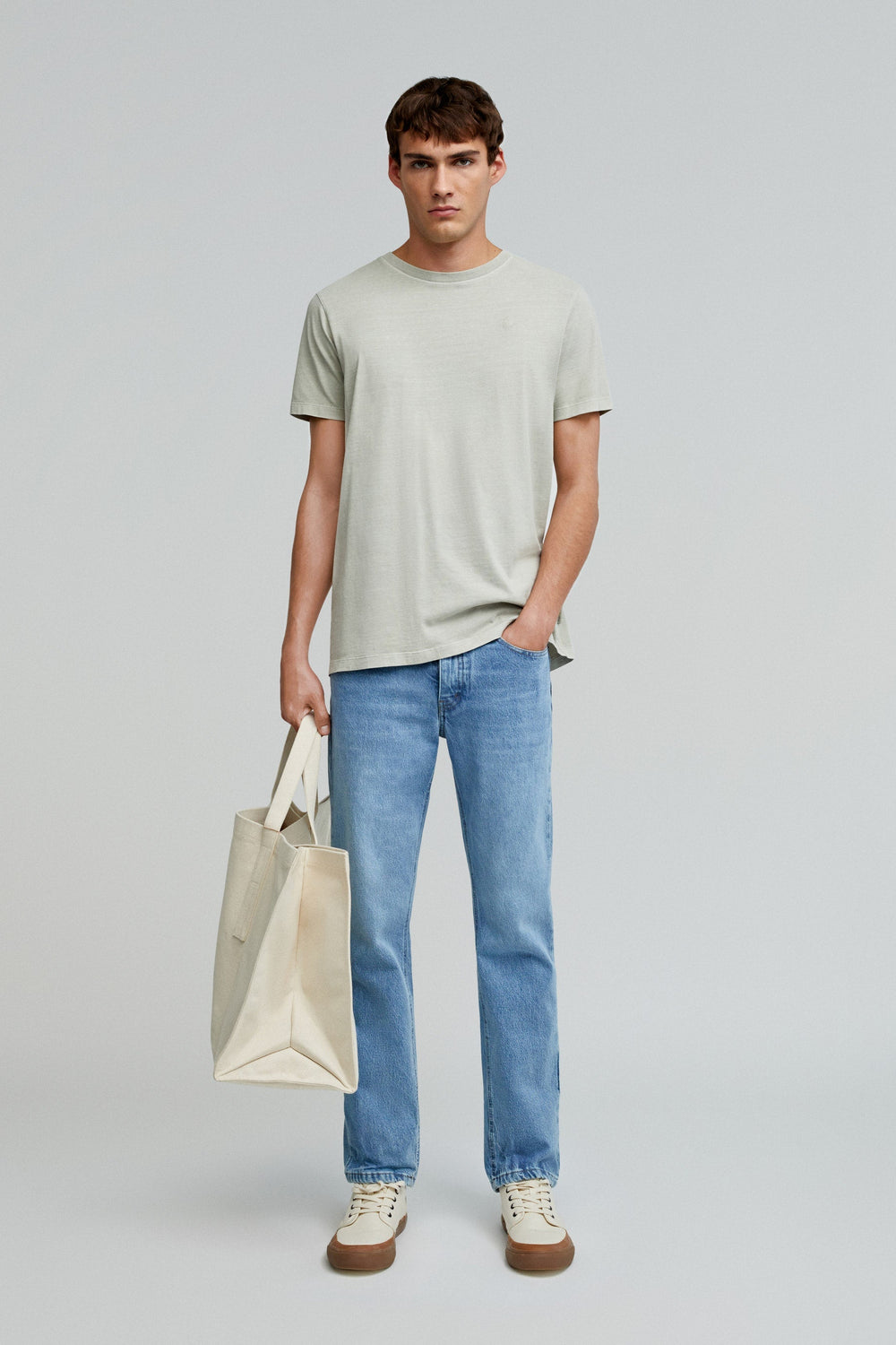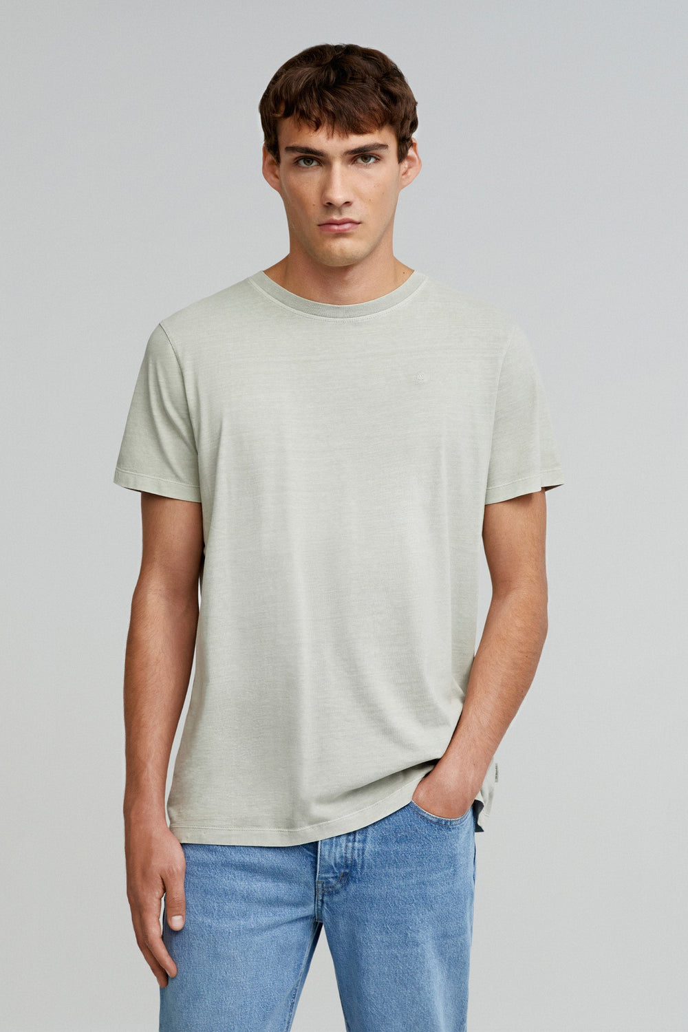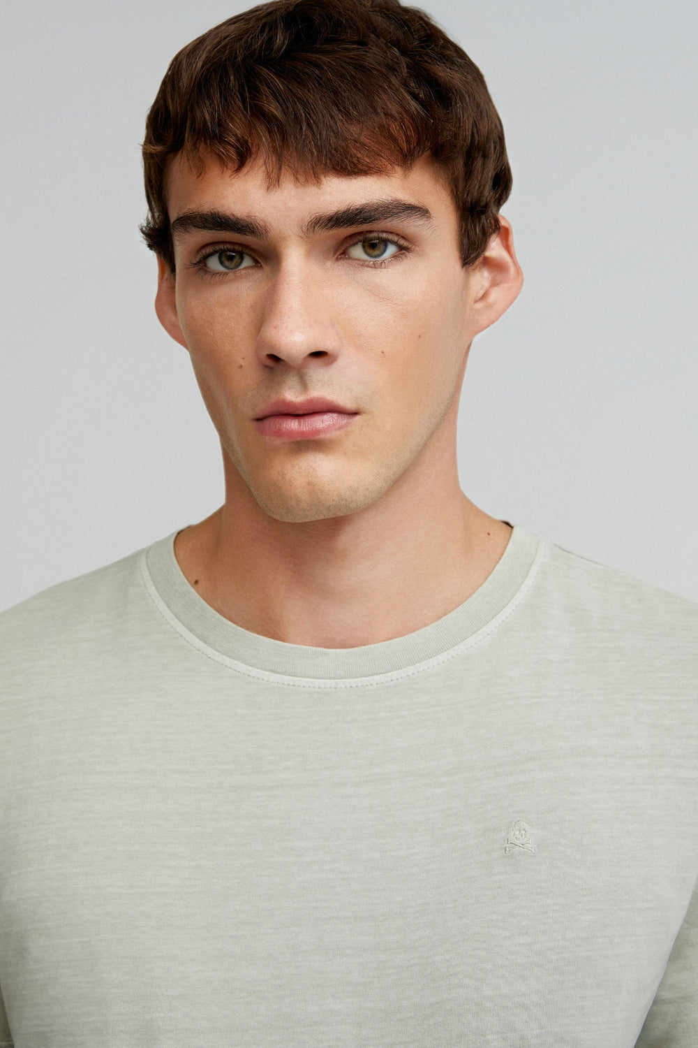 Camiseta lavada confeccionada en 100% algodón BCI. Regular fit, cuello redondo y manga corta. Detalle de calavera bordada a tono,
