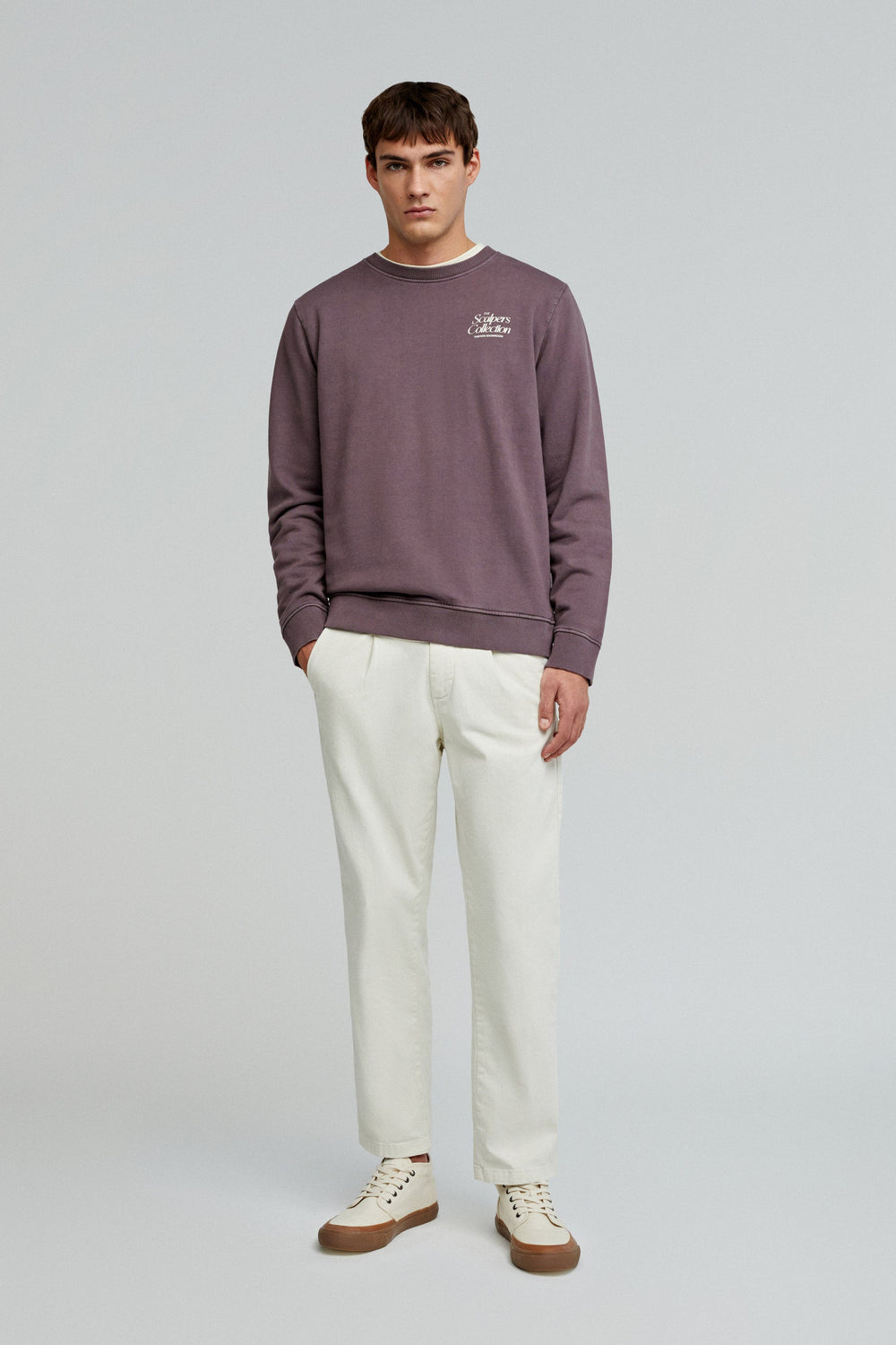 Sudadera lavada confeccionada en 100% algodón BCI. Regular fit, cuello redondo y manga larga. Print en pecho y trasero.
