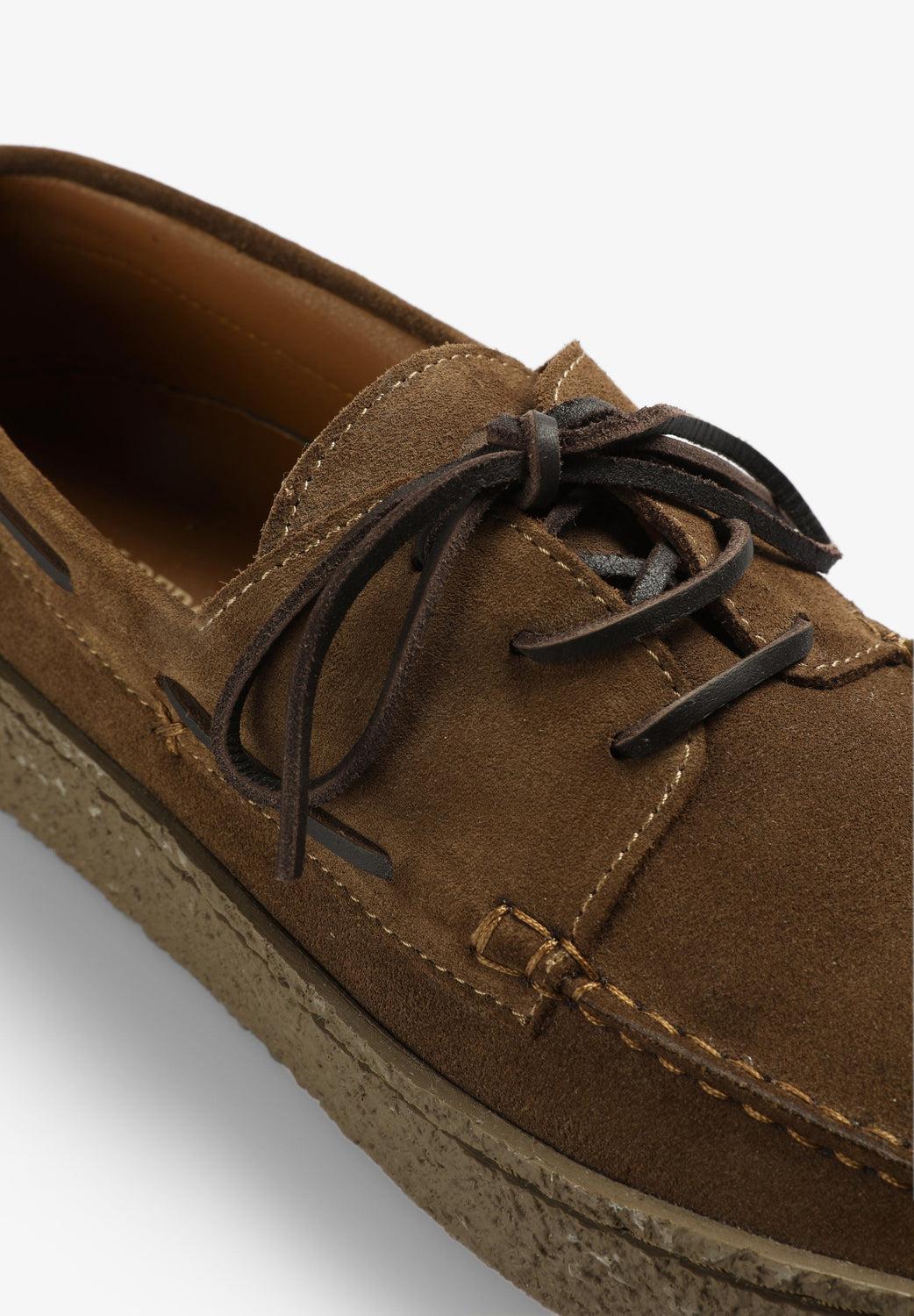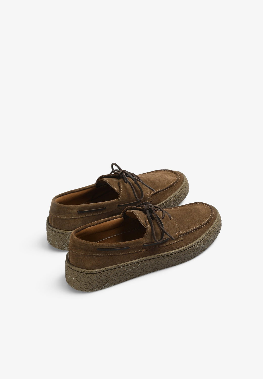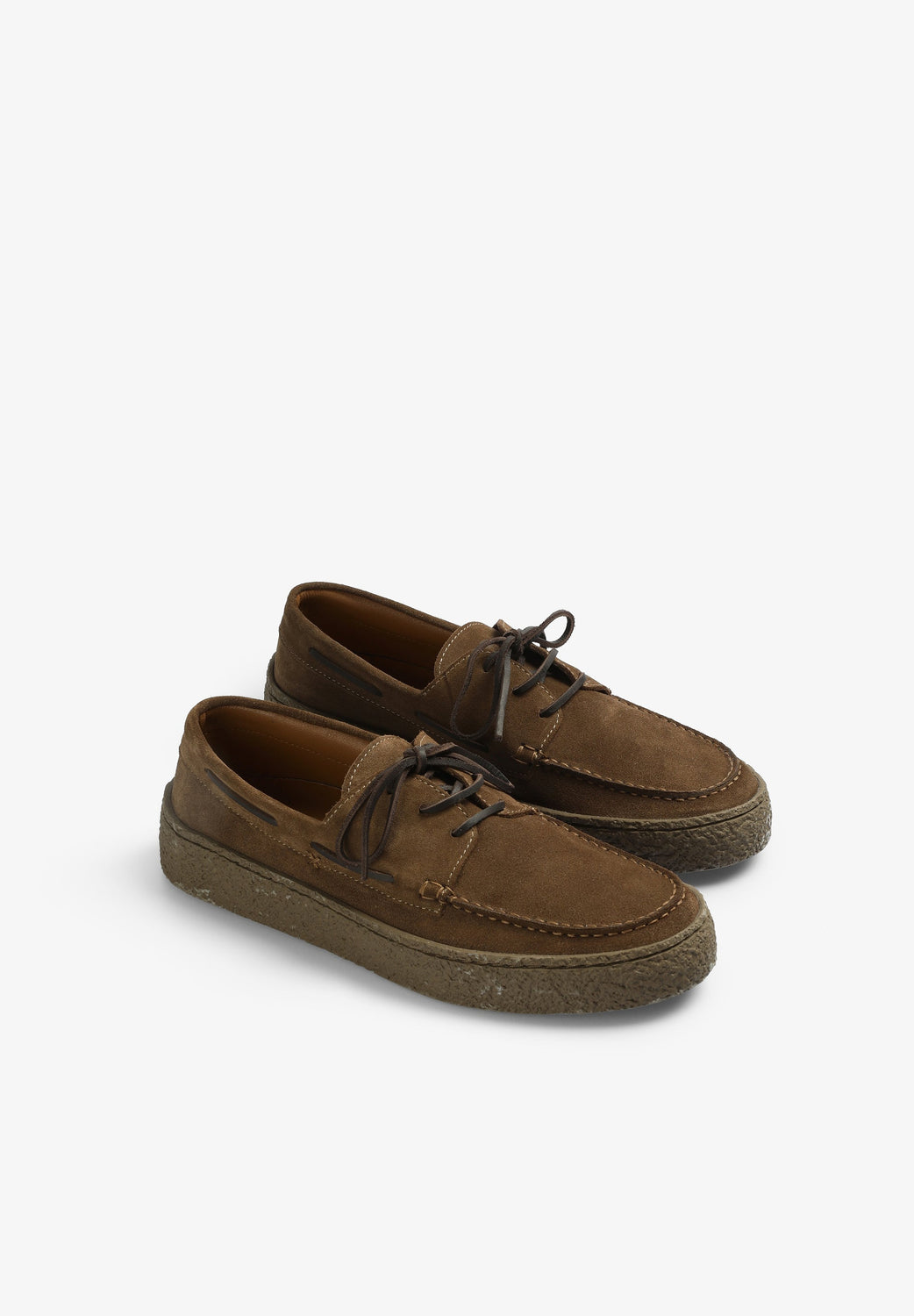 Zapatos confeccionado en piel de serraje. Cierre con cordones de piel, suela de goma.