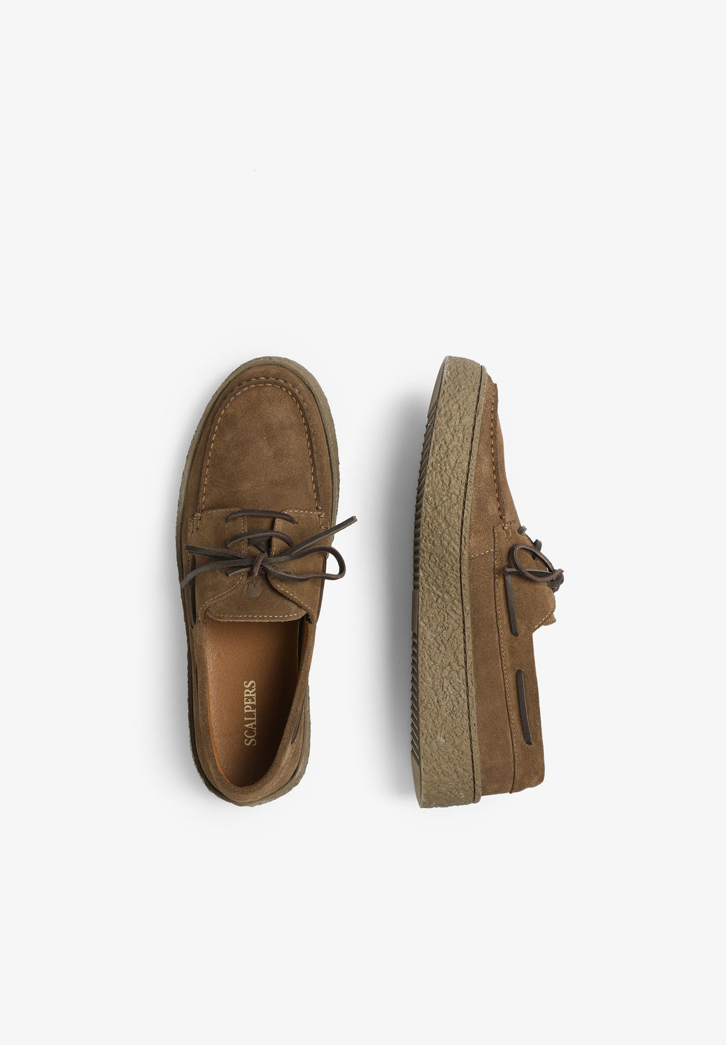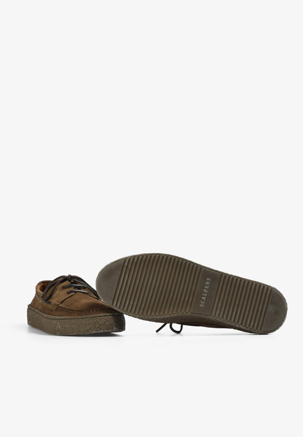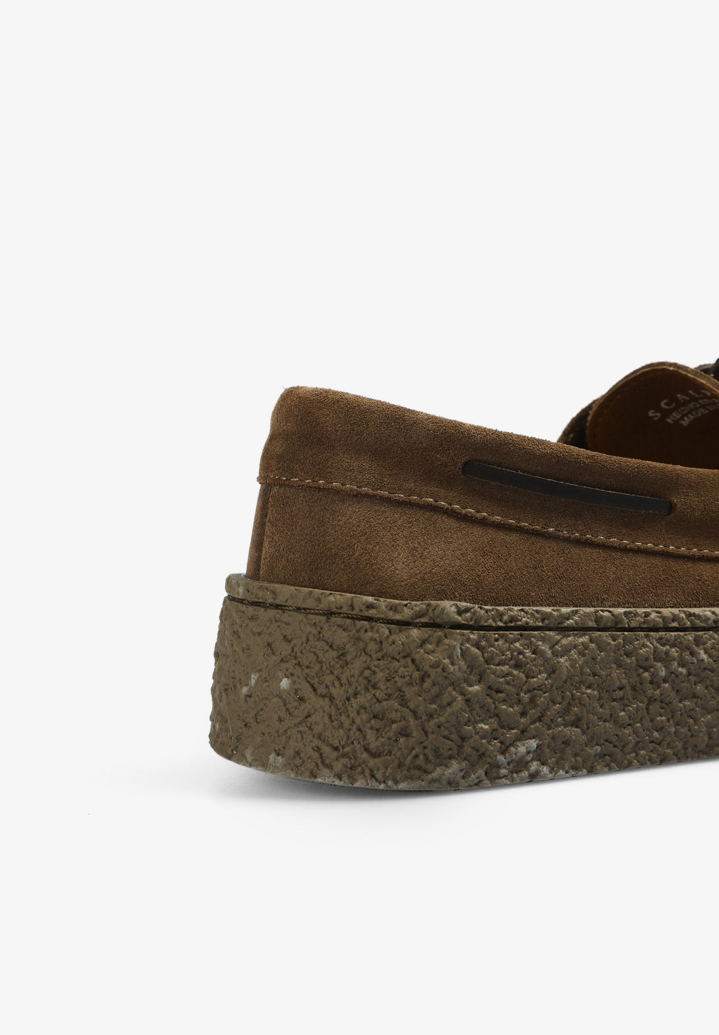 Zapatos confeccionado en piel de serraje. Cierre con cordones de piel, suela de goma.