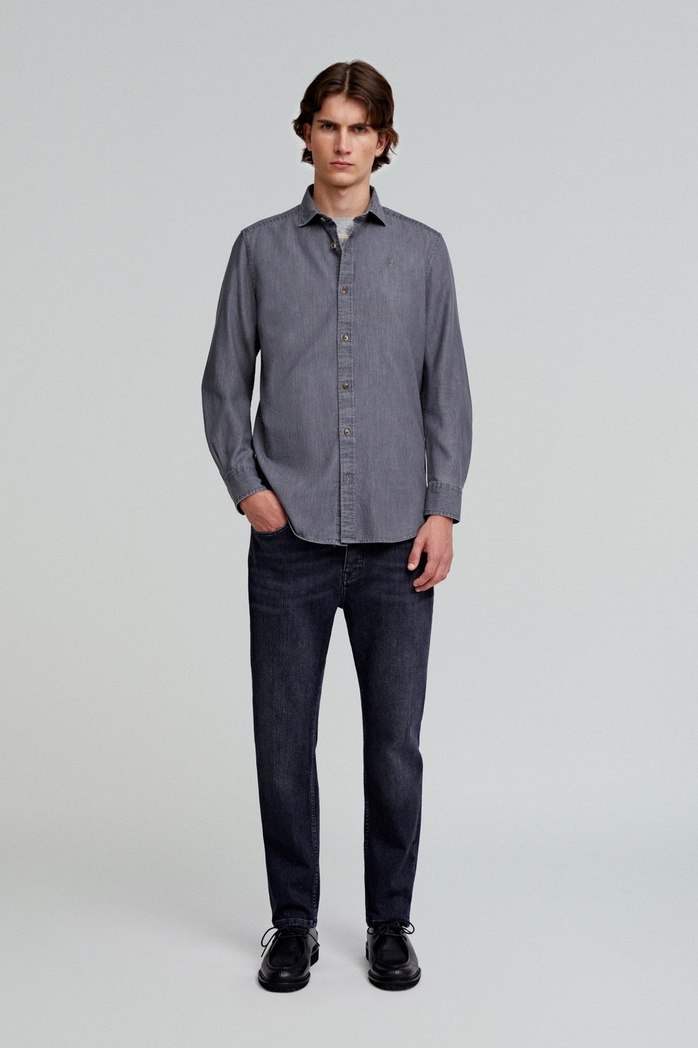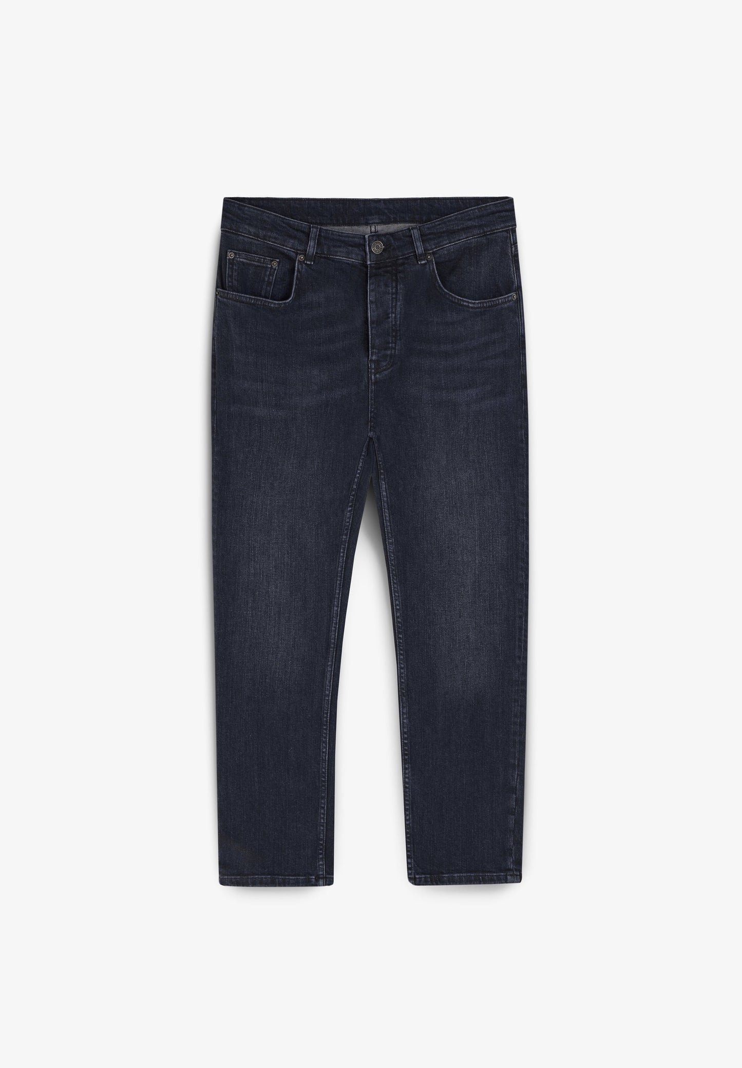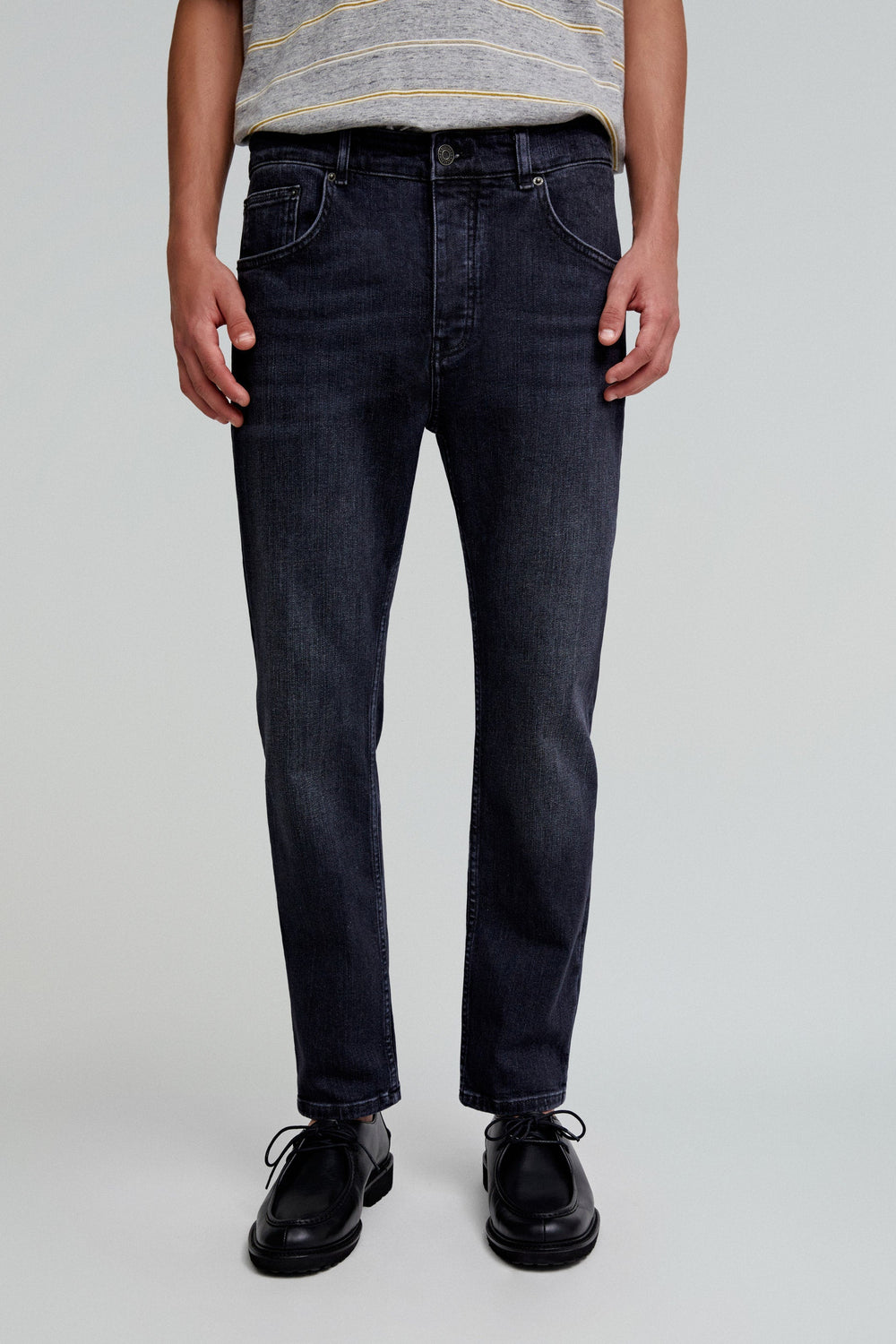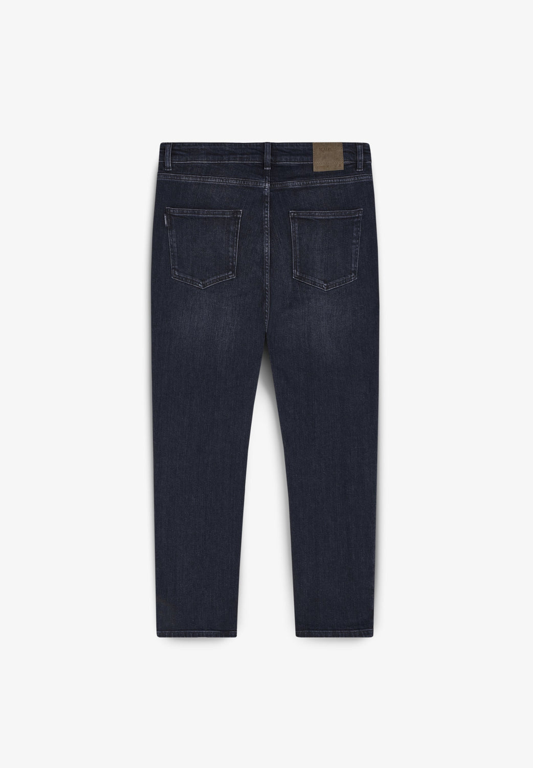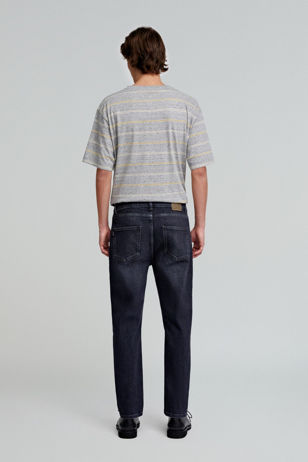 Jeans cropped confeccionado en algodón ligeramente elástico. Regular fit, cierre con botón y cremallera. Bolsillos delanteros y traseros y trabillas en cintura.