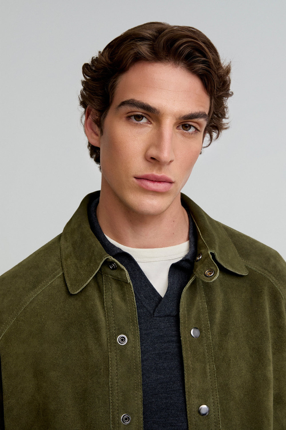 Chaqueta confeccionada en 100% piel. Regular fit, cuello ligeramente redondeado y cierre con snaps. Manga larga y bolsillos con tapeta y snaps.