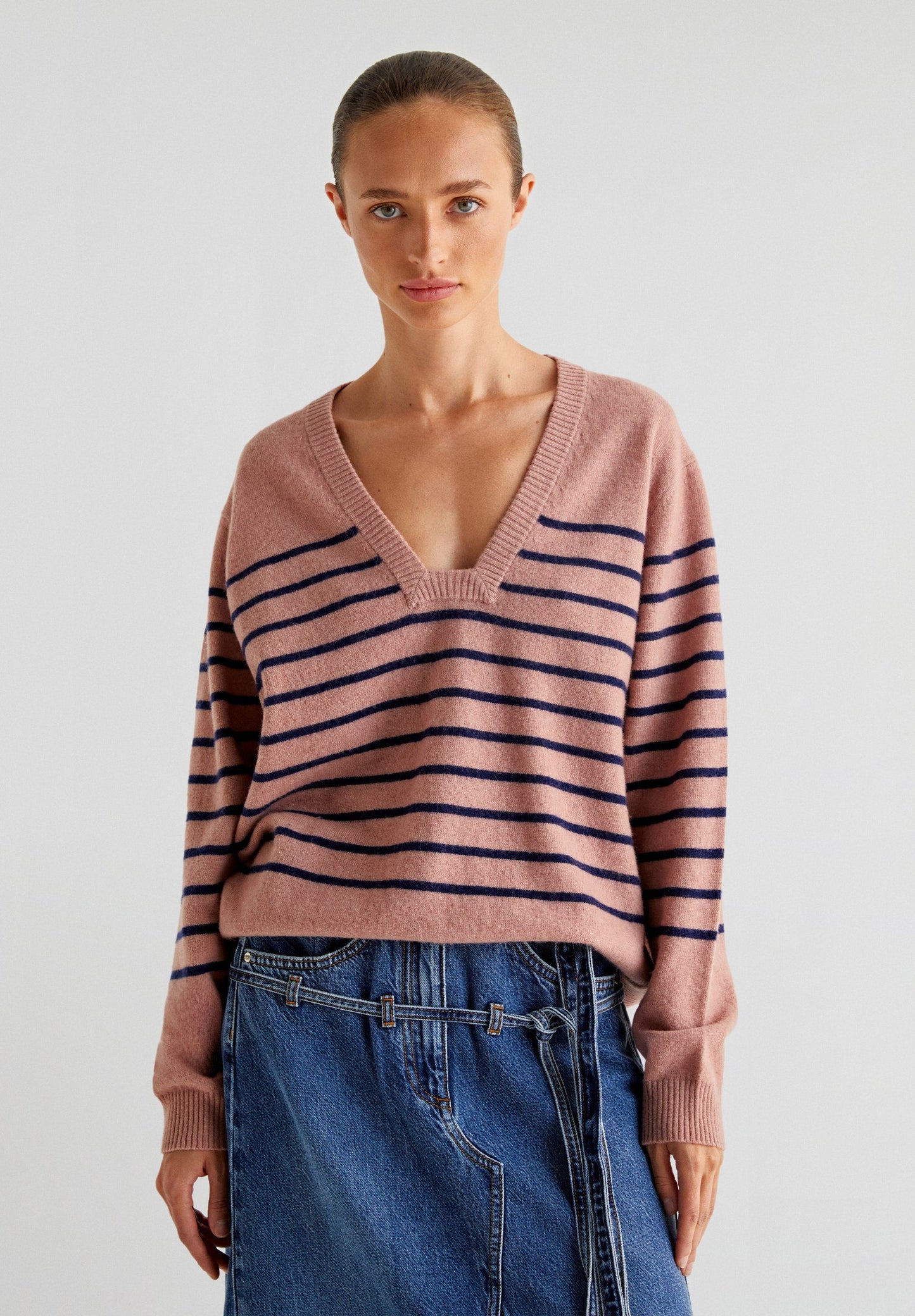 Jersey de rayas confeccionado en mezcla de lana. Regular fit, cuello con escote cuadrado y manga larga.
