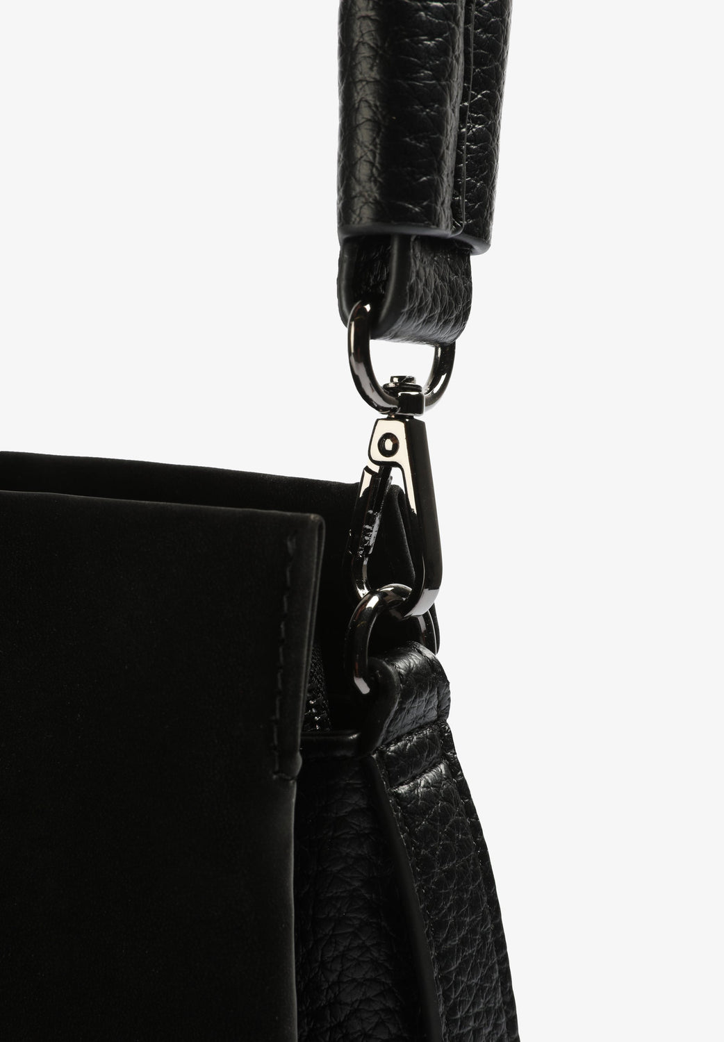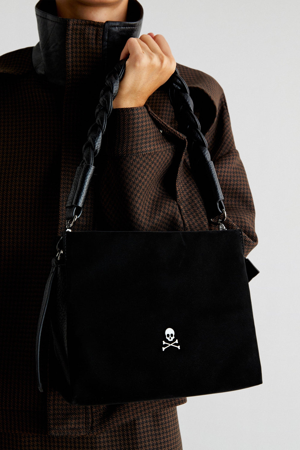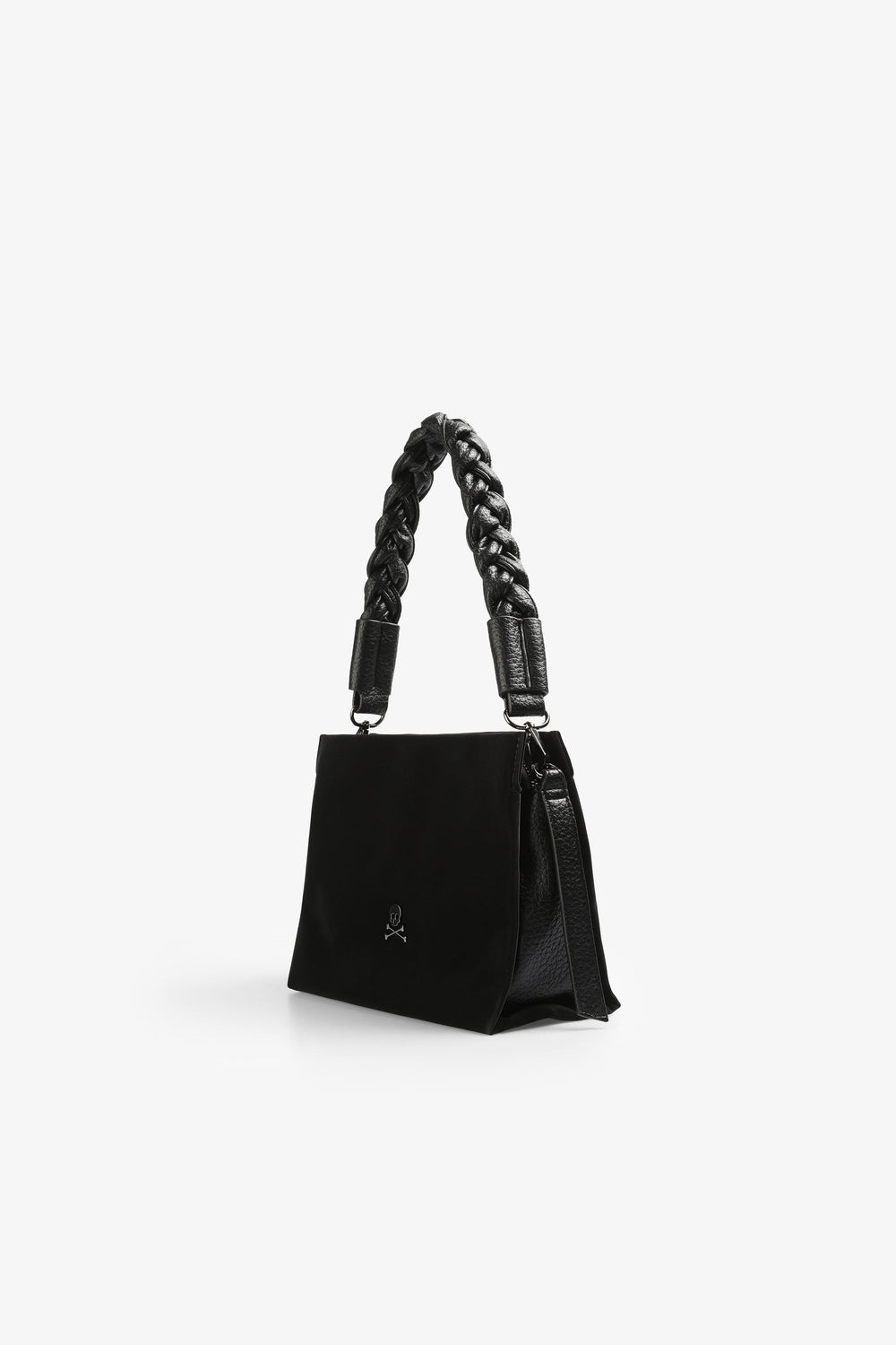 Bolso pequeño confeccionado en nylon. Doble asa larga desmontable y corta trenzada. Compartimentos interiores con cremallera y snaps y bolsillo interior con cremallera.