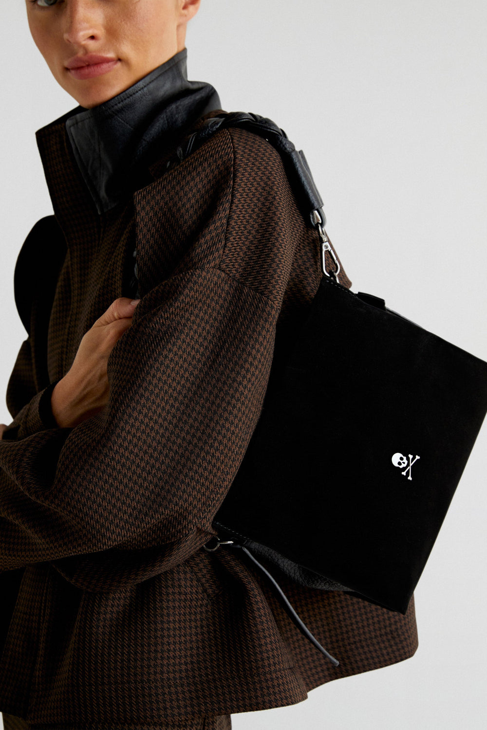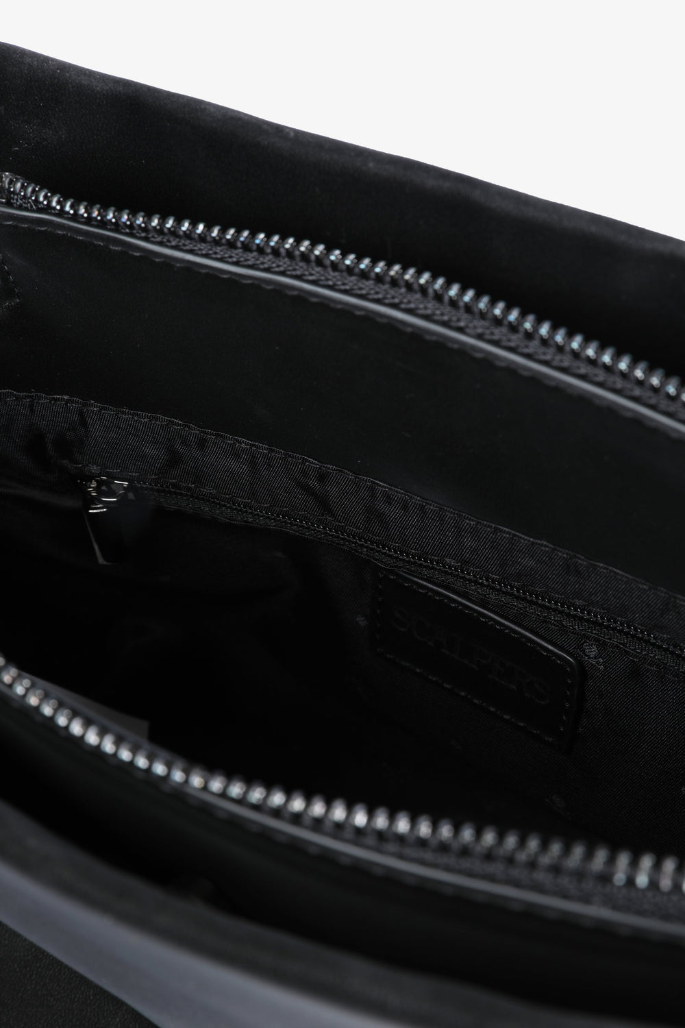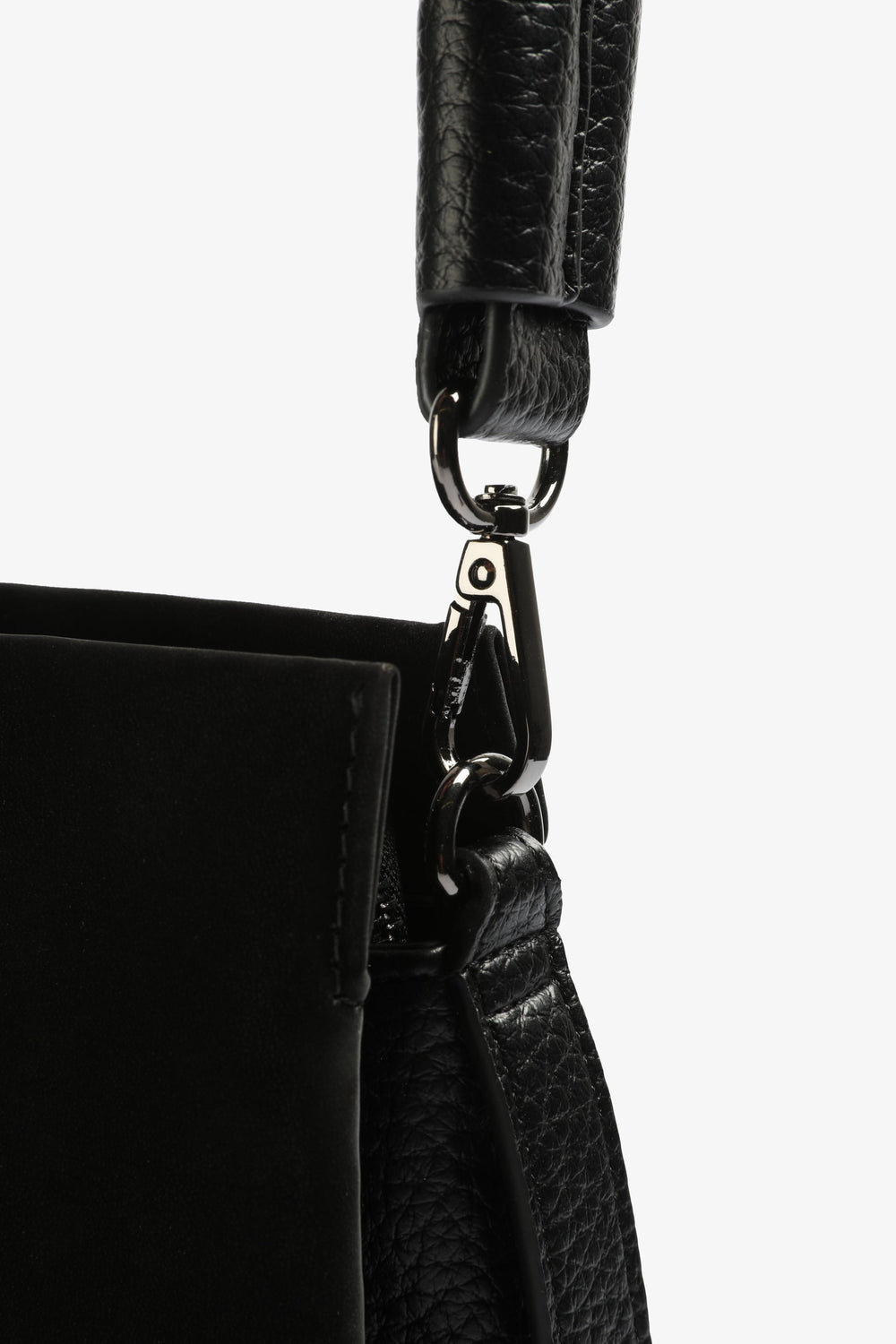 Bolso pequeño confeccionado en nylon. Doble asa larga desmontable y corta trenzada. Compartimentos interiores con cremallera y snaps y bolsillo interior con cremallera.