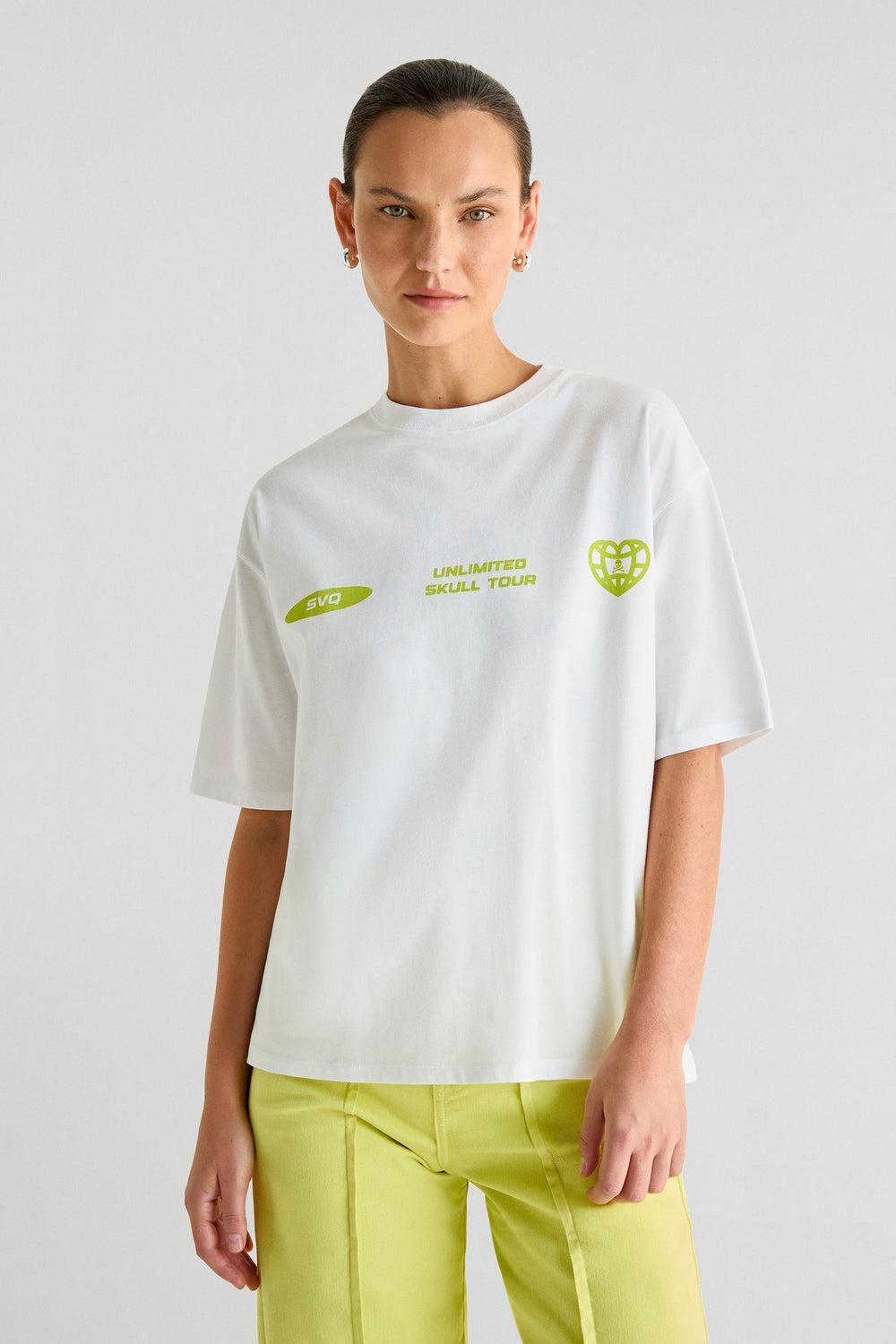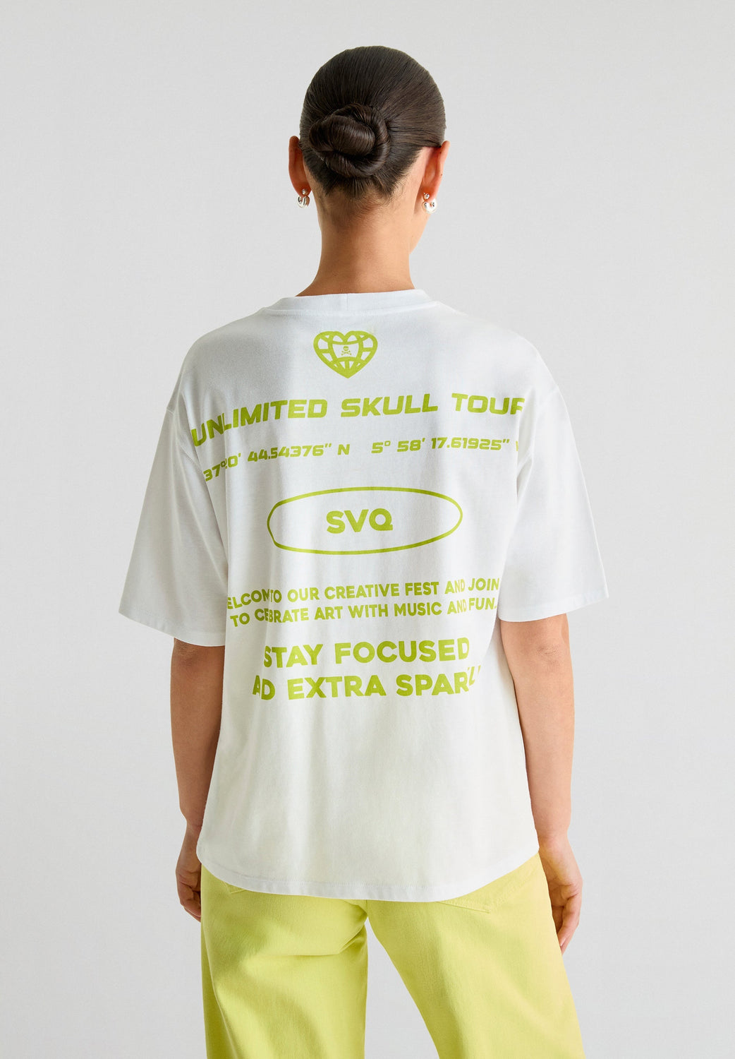 Camiseta confeccionada en tejido 100% algodón. Relaxed fit, cuello redondo y manga corta. Print trasero y frontal.
