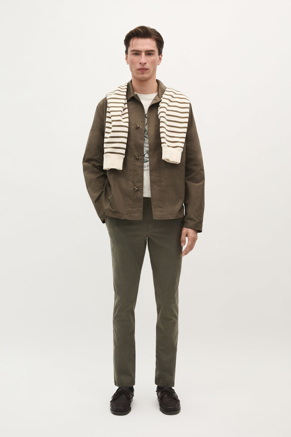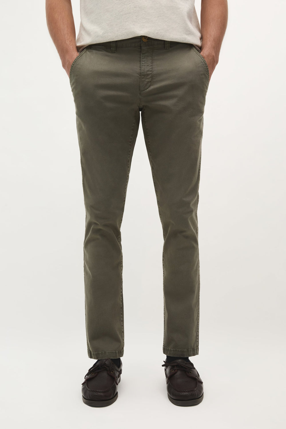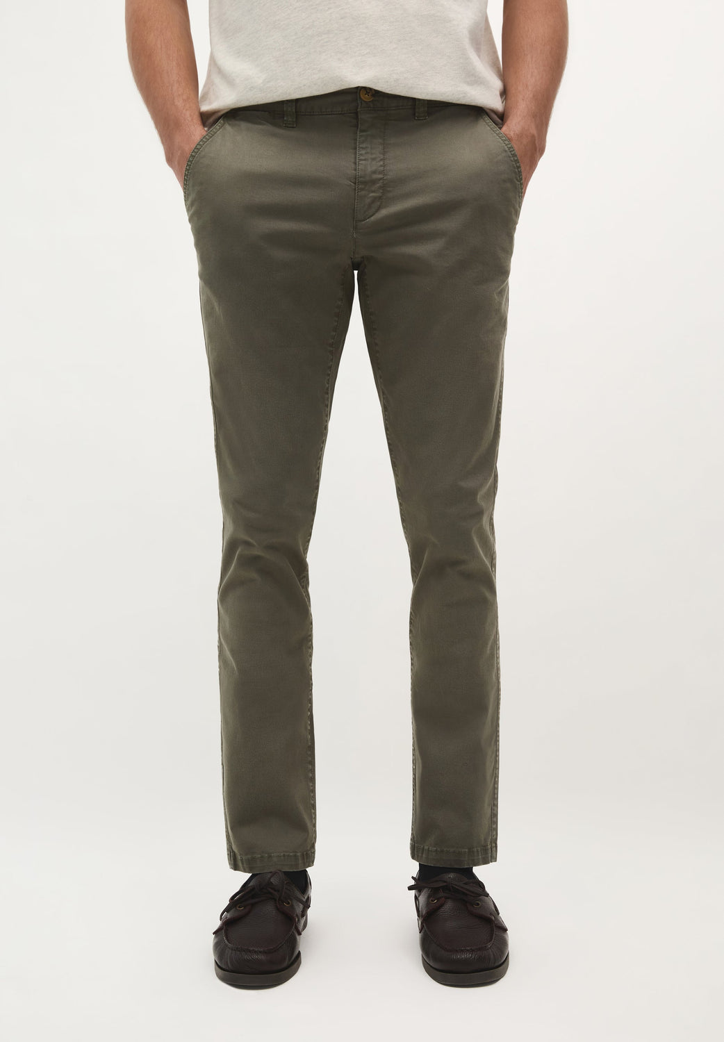 Pantalón chino casual confeccionado en mezcla de algodón reciclado y BCI. Regular fit, cierre con botón y cremallera y bolsillos laterales y traseros. Trabillas en cintura.