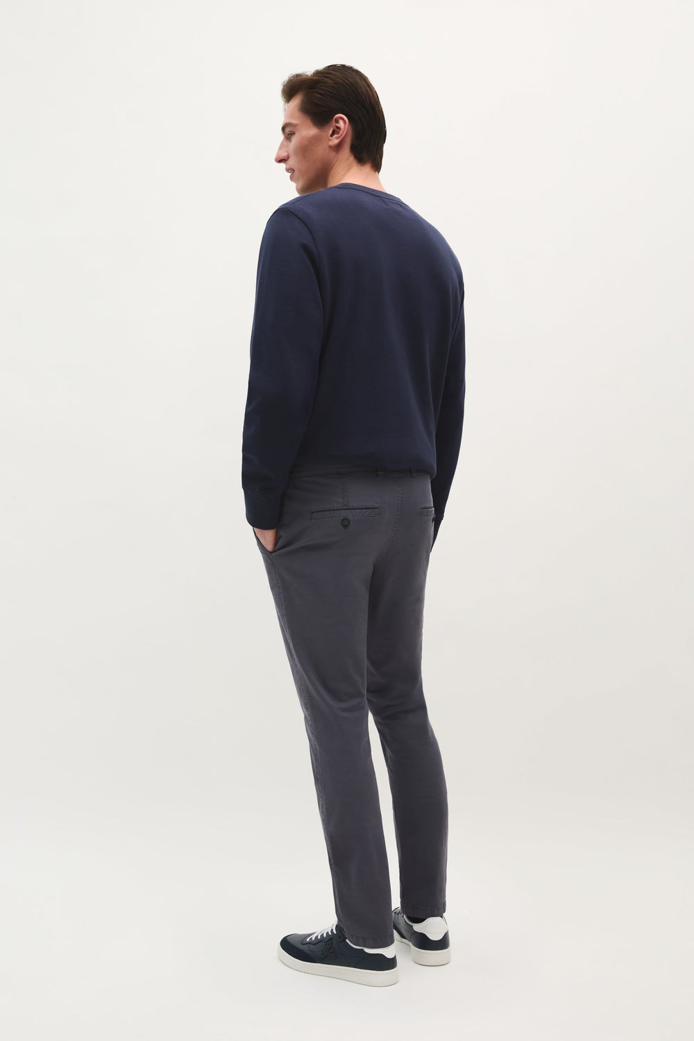 Pantalón chino casual confeccionado en mezcla de algodón reciclado y BCI. Regular fit, cierre con botón y cremallera y bolsillos laterales y traseros. Trabillas en cintura.