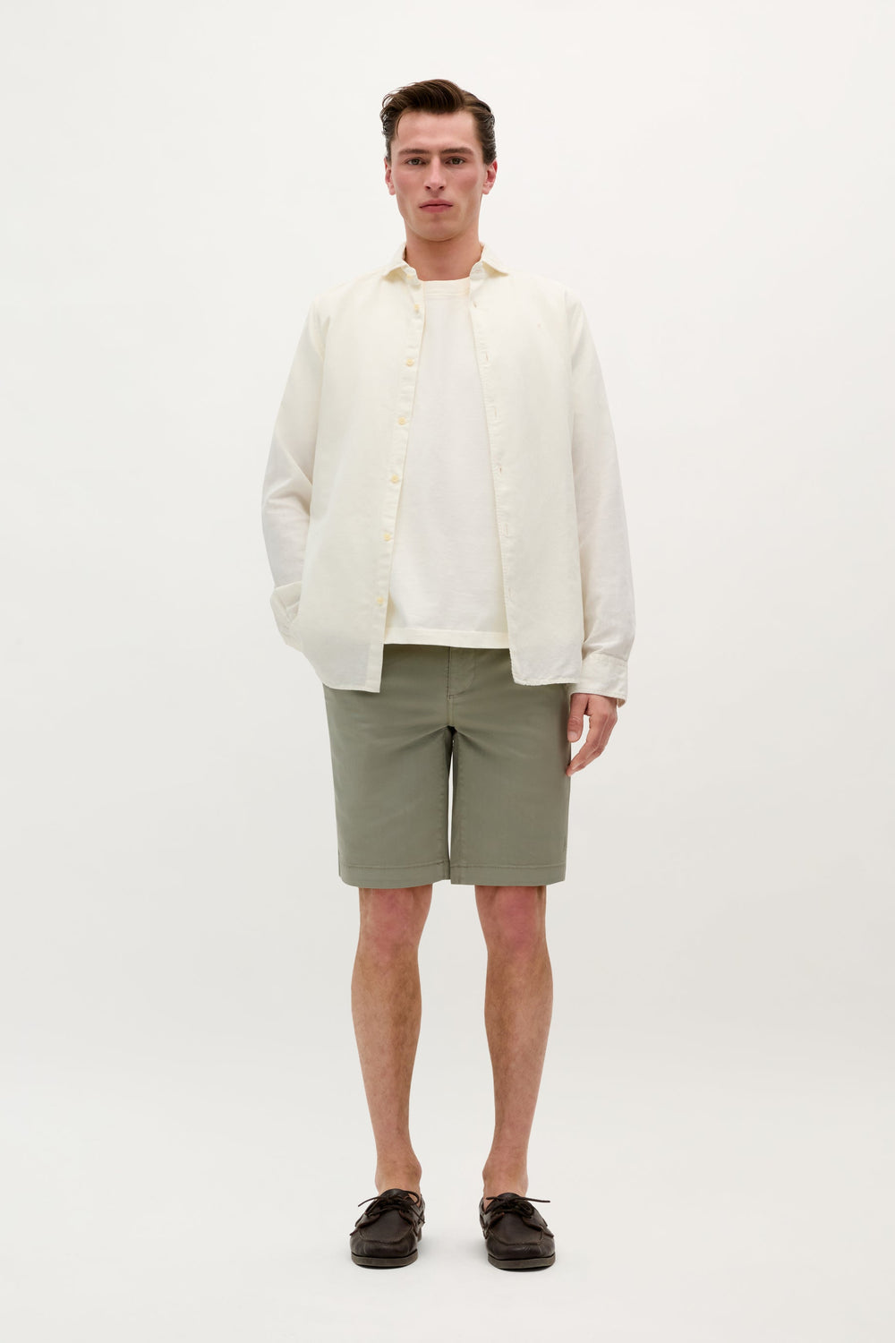 Bermuda confeccionada en Algodón Orgánico. Bolsillos laterales. Bolsillos en espalda con cierre por abotonadura. Cierre en frontal por cremallera y botón. Detalle de logo en espalda.
