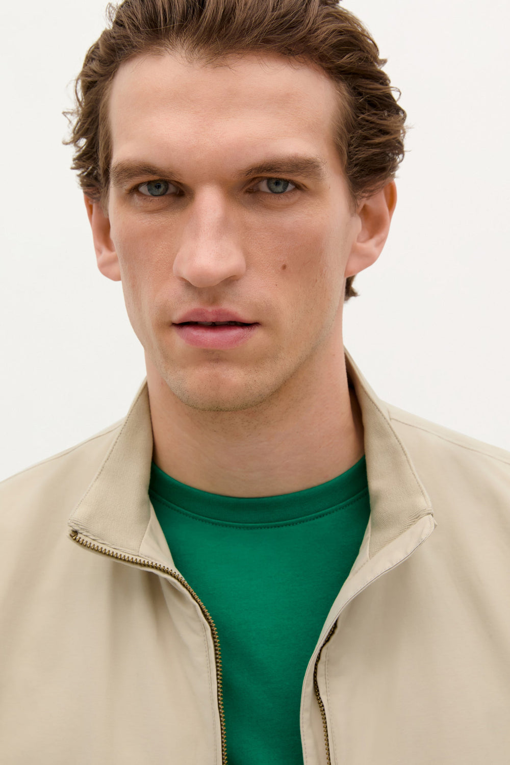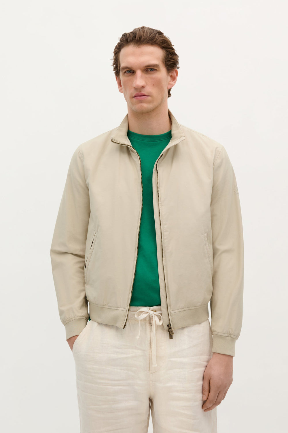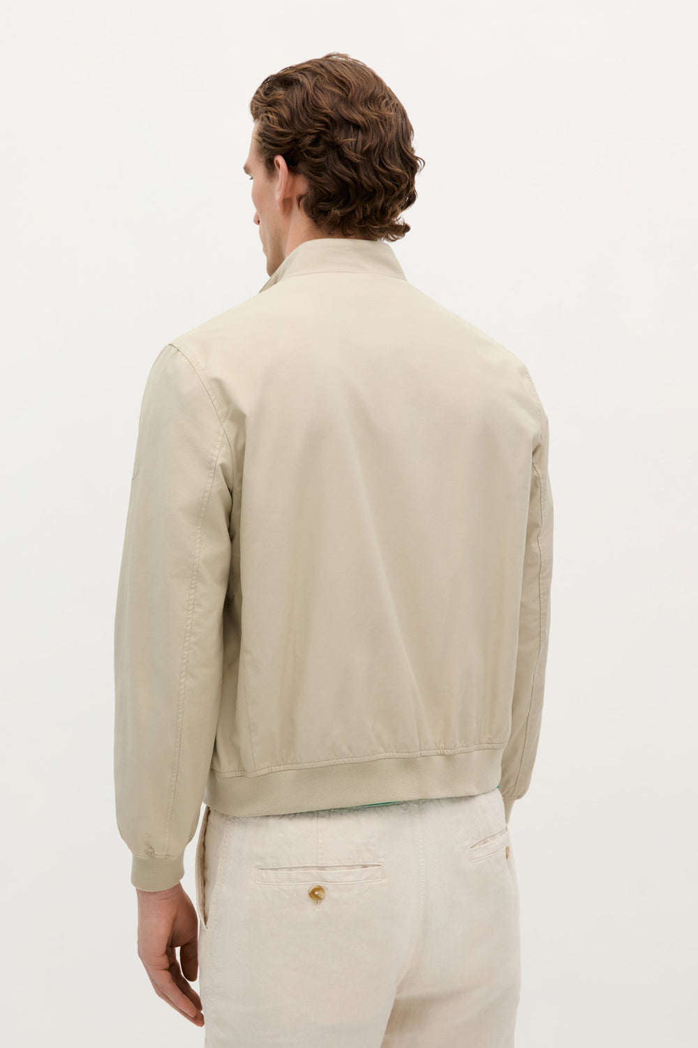 Chaqueta tipo bomber confeccionada en mezcla de algodón y tejido técnico. Regular Fit, cuello con rib y cierre con cremallera. Manga larga terminada en puño con elástico y bolsillos con cierre de snap.