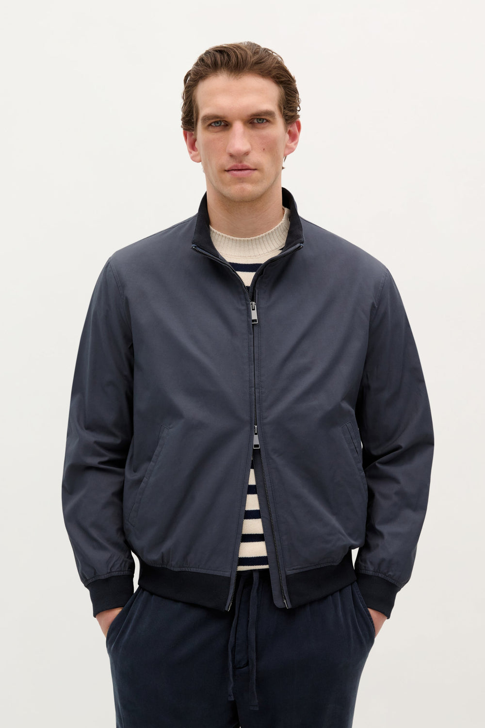 Chaqueta tipo bomber confeccionada en mezcla de algodón y tejido técnico. Regular Fit, cuello con rib y cierre con cremallera. Manga larga terminada en puño con elástico y bolsillos con cierre de snap.