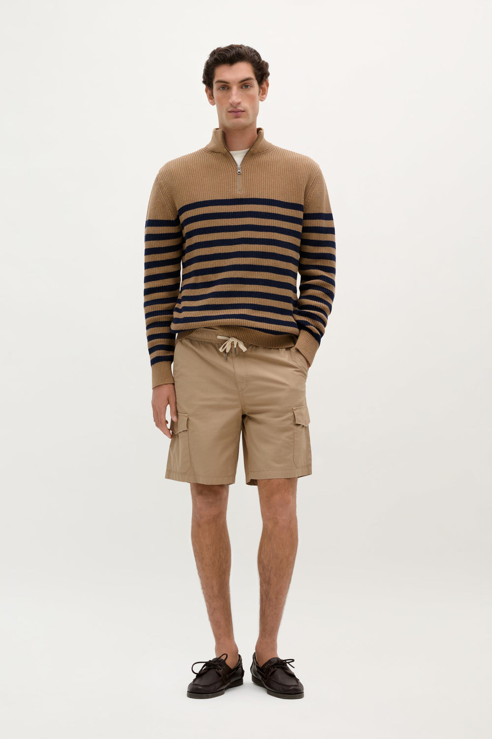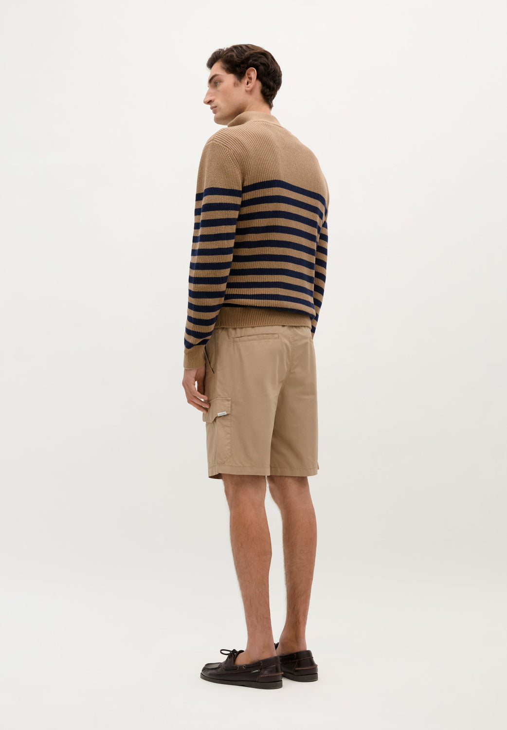 Bermuda cargo. Confeccionada en algodón orgánico. Corte Regular fit. Cierre con botón y cremallera. Bolsillos laterales. Bolsillos en pernera de parche con solapa y cierre con snaps. Bolsillos trasero de parche. Trabillas en cintura. Detalle de calavera bordada a tono.