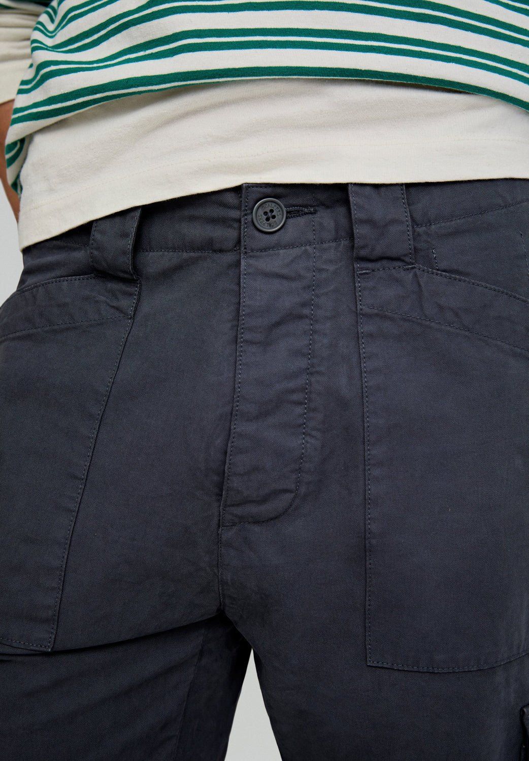Pantalón tipo cargo confeccionado en 100% algodón BCI. Regular fit, cierre con botón y cremallera y bolsillos laterales. Bolsillos de parche en pernera y trabillas en cintura.