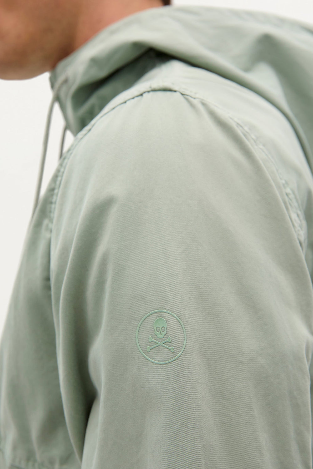 Chaqueta ligera confeccionada en 100% algodón BCI. Regular fit, cuello con capucha ajustable con cordón y cierre con cremallera. Manga larga terminada en elástico y bolsillos laterales con tapeta y snap.