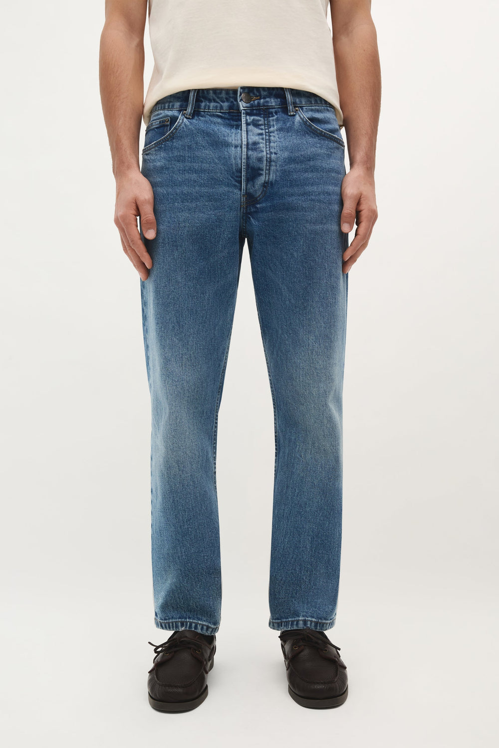 Jeans confeccionados en algodón BCI ligeramente elástico. Regular fit, cierre con botón y cremallera y bolsillos laterales y traseros. Trabillas en cintura.