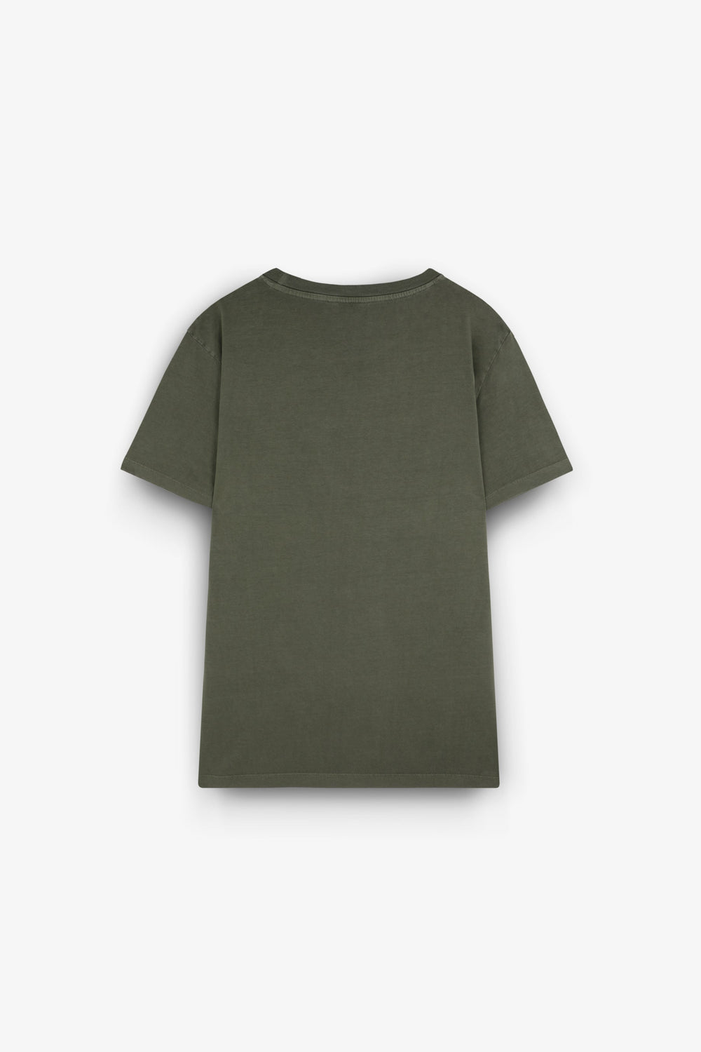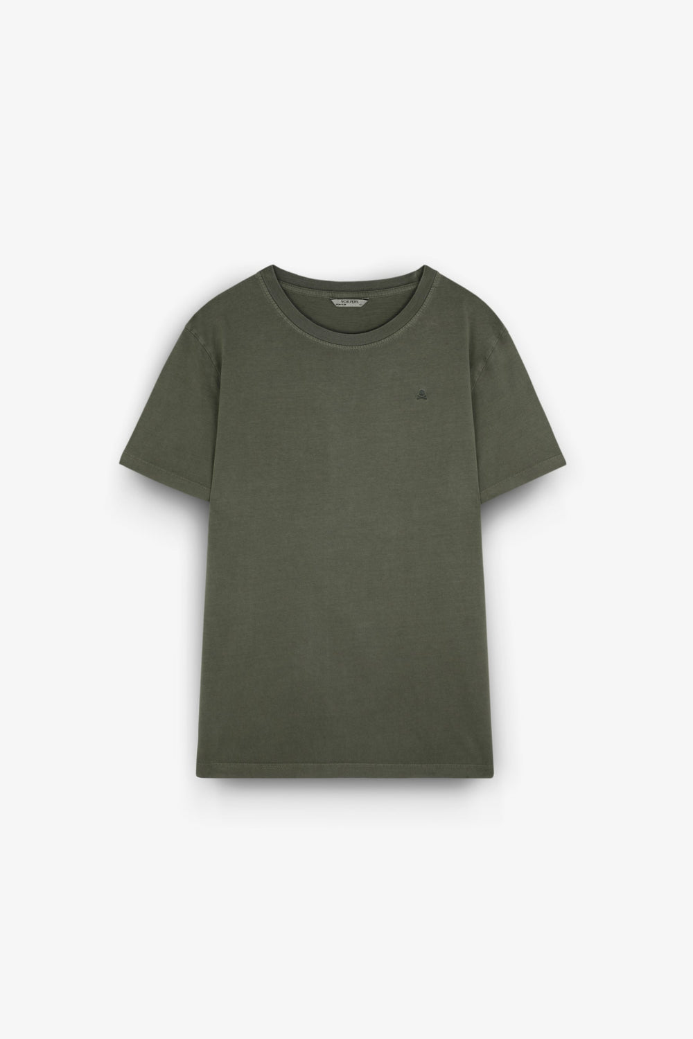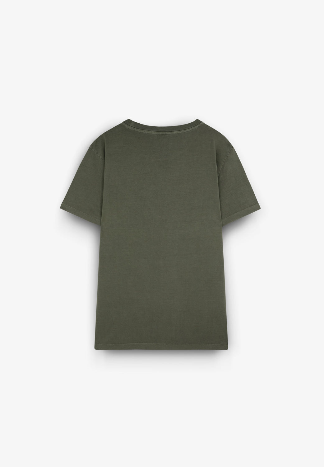 Camiseta lavada confeccionada en 100% algodón BCI. Regular fit, cuello redondo y manga corta. Detalle de calavera bordada a tono,