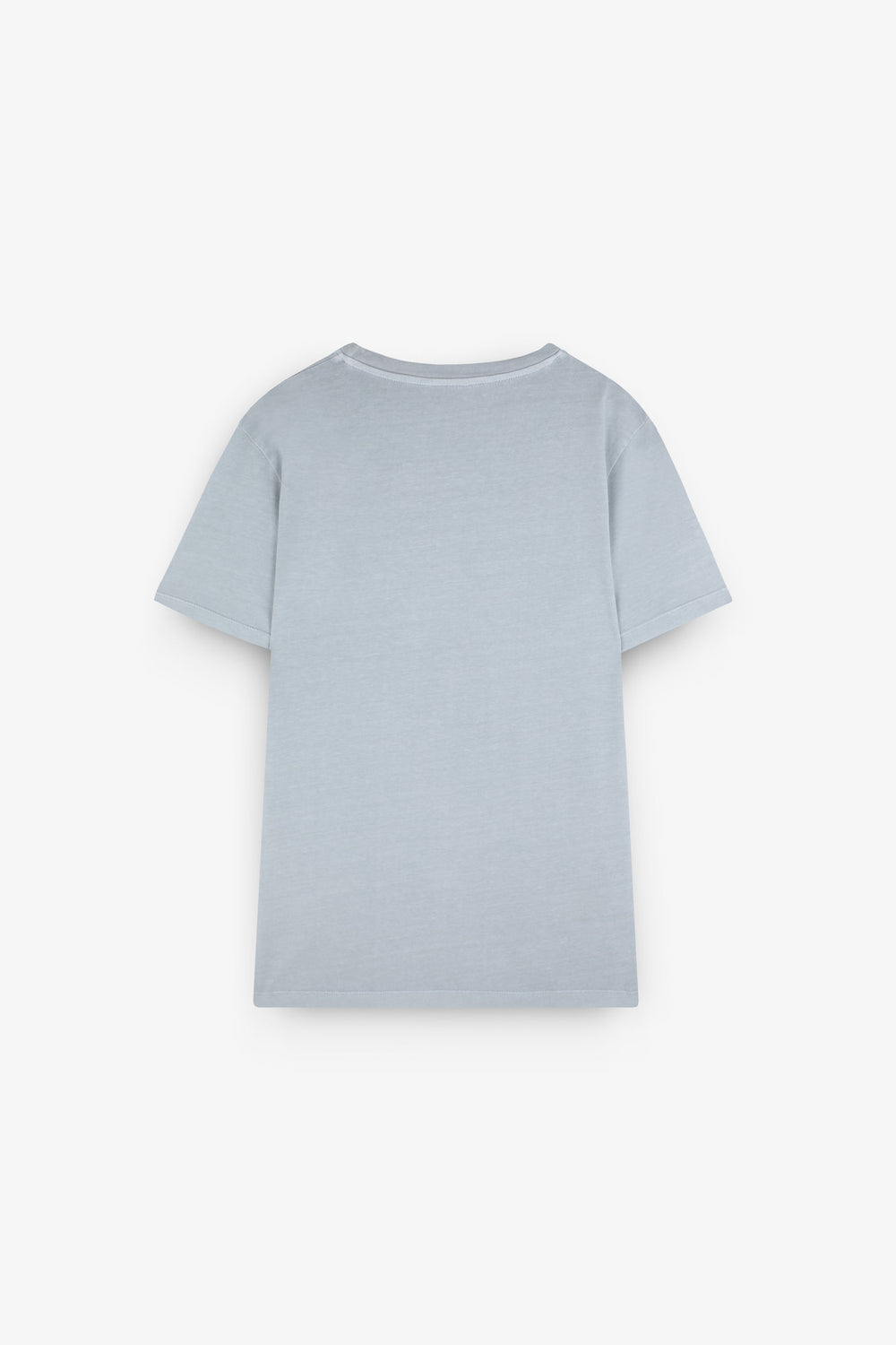 Camiseta lavada confeccionada en 100% algodón BCI. Regular fit, cuello redondo y manga corta. Detalle de calavera bordada a tono,