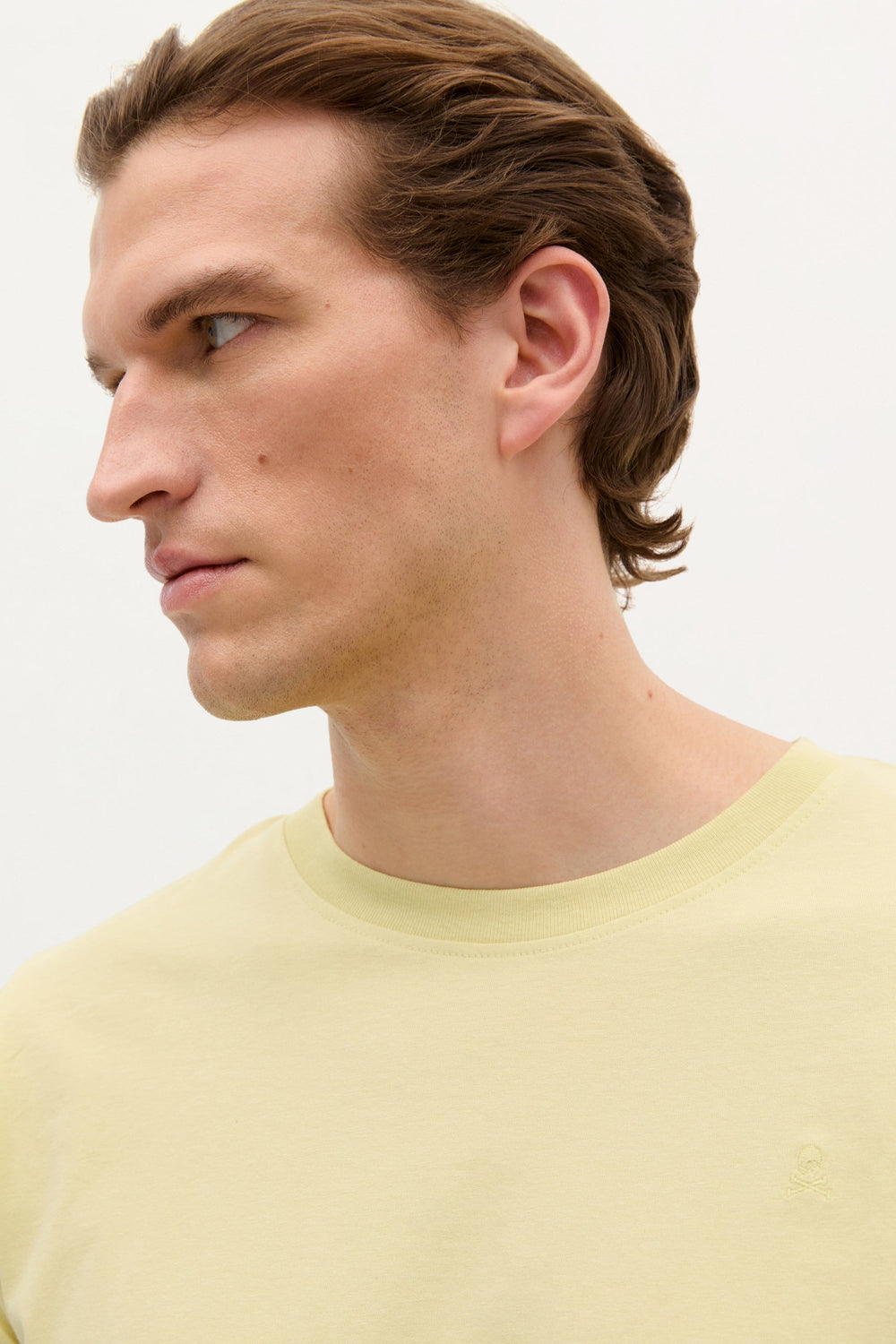 Camiseta básica con calavera bordada. Confeccionada en 100% algodón orgánico. Corte Regular Fit. Cuello redondo. Manga corta.