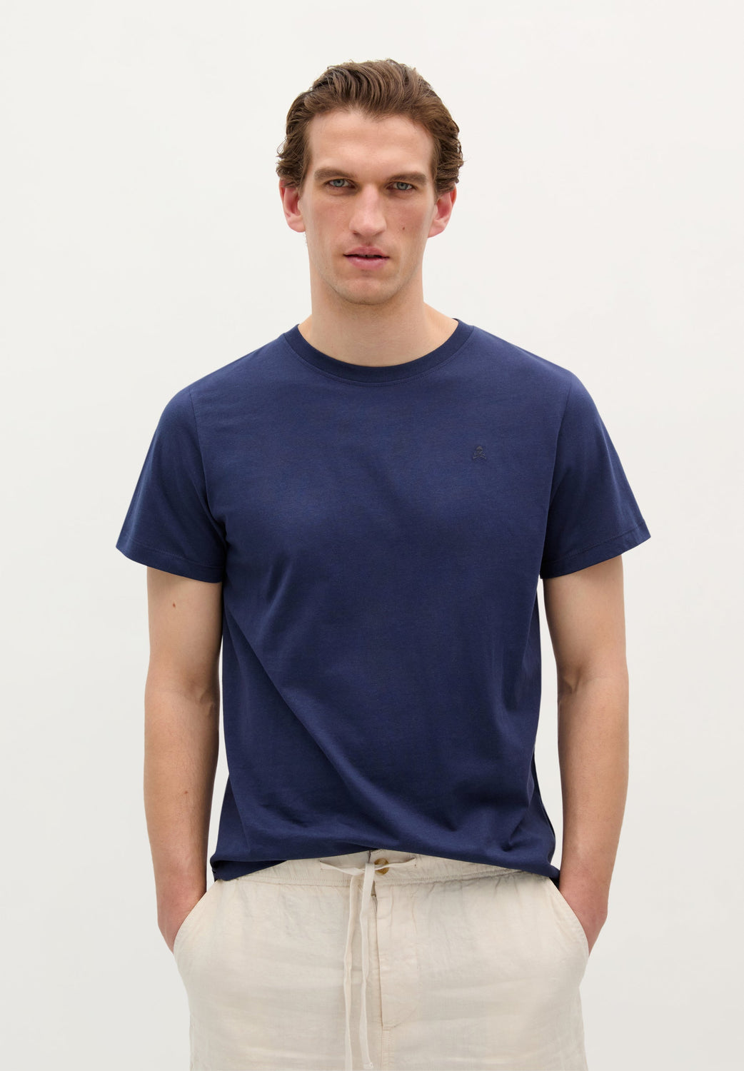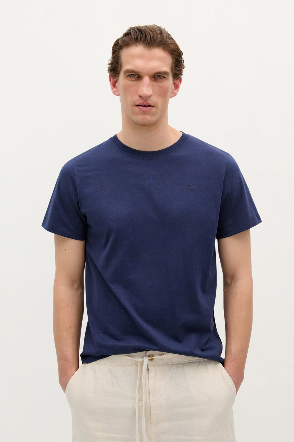 Camiseta básica con calavera bordada. Confeccionada en 100% algodón orgánico. Corte Regular Fit. Cuello redondo. Manga corta.