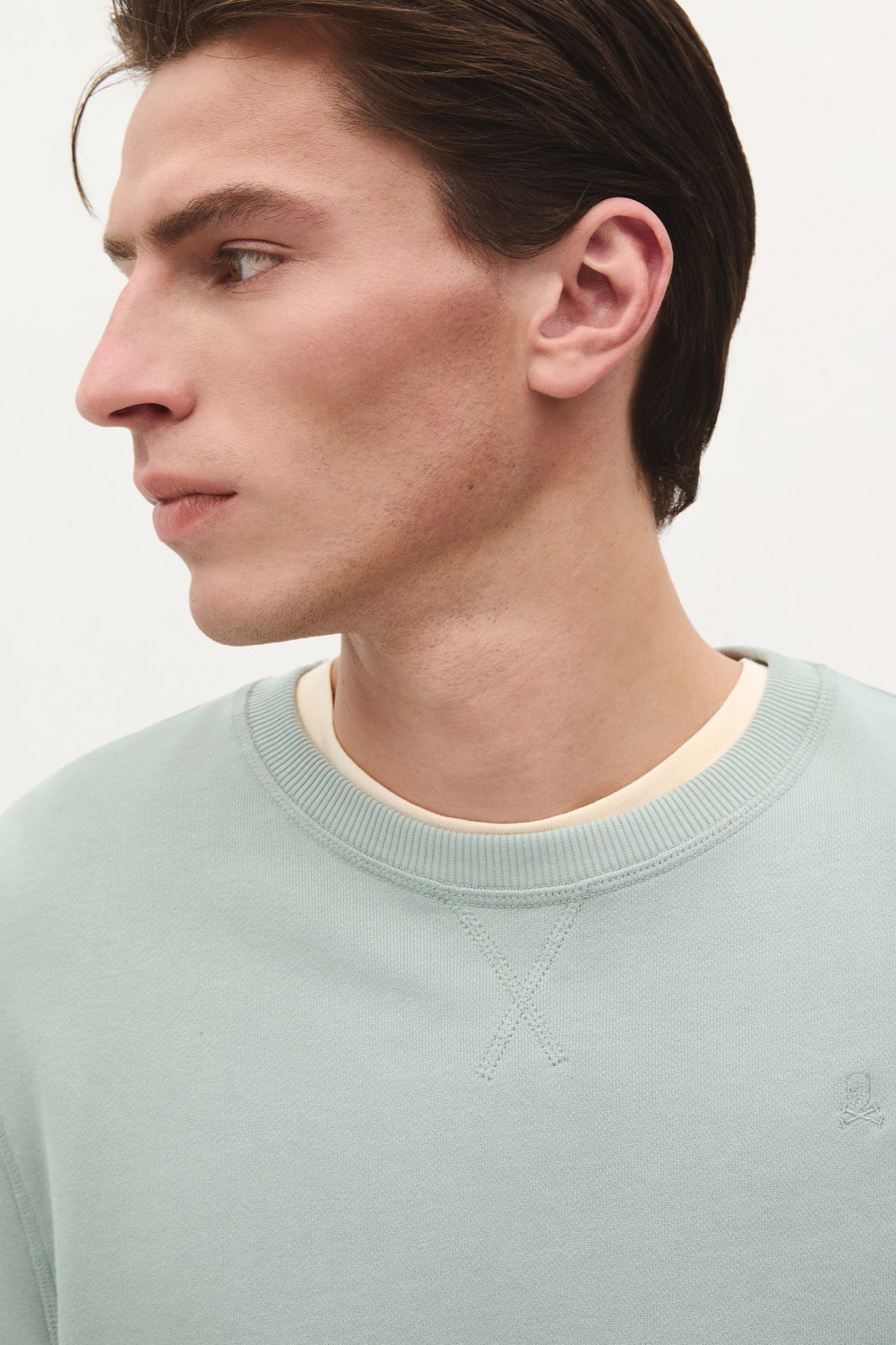 Sudadera básica confeccionada en 100% algodón BCI. Regular fit, cuello redondo y manga larga. Calavera bordada a tono.
