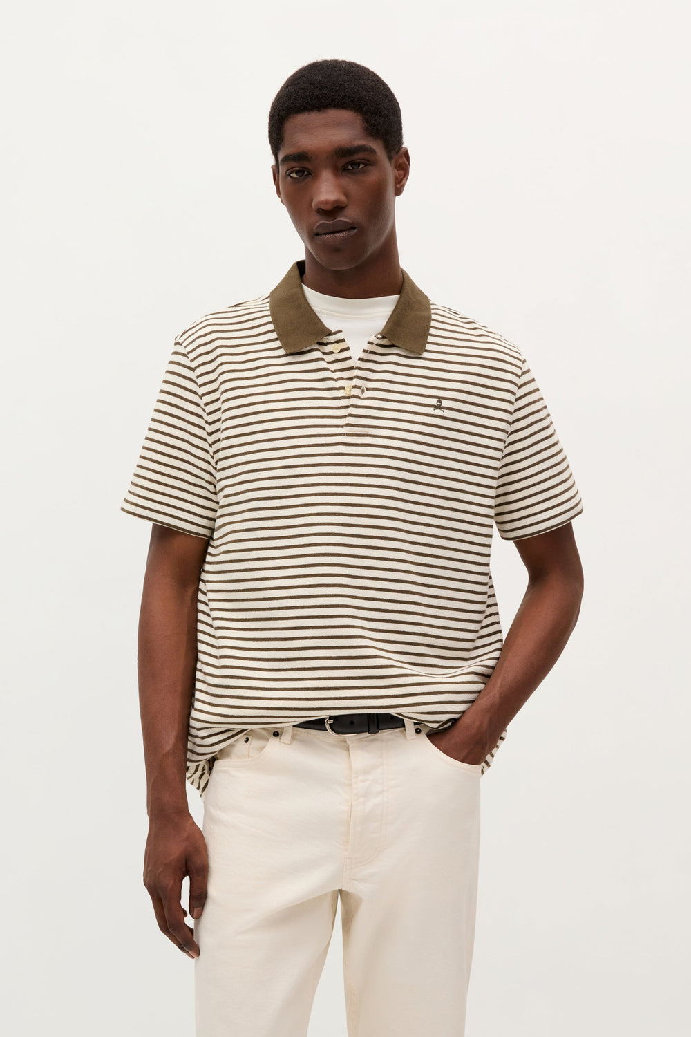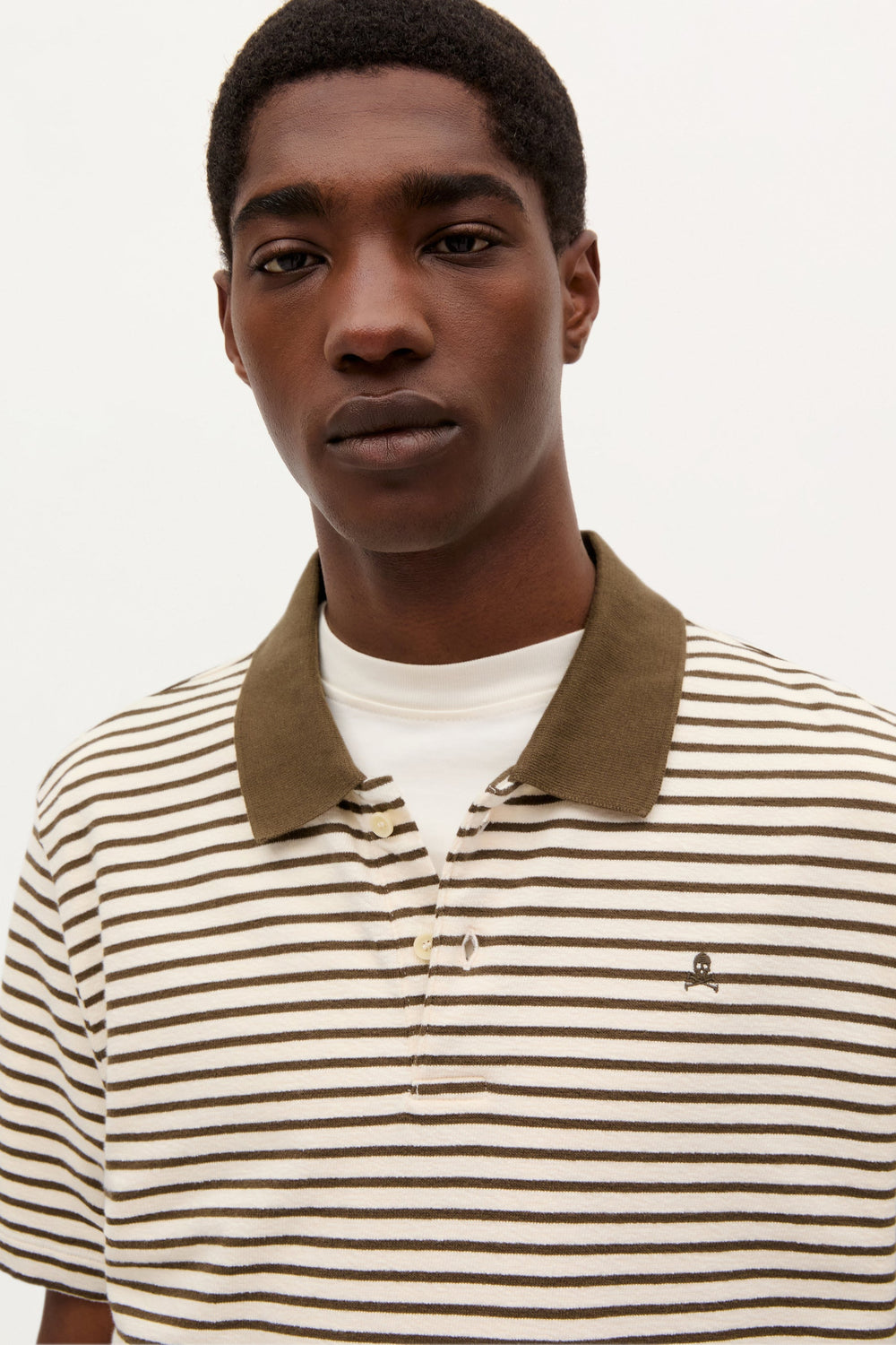 Polo de rayas. Regular fit. Cuello a contraste. Manga corta. Cierre mediante botones. Detalle de calavera bordada a contraste en pecho.