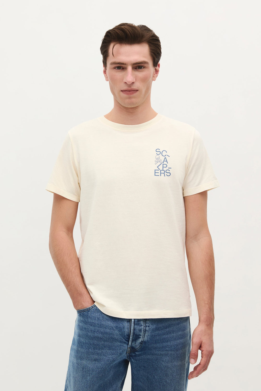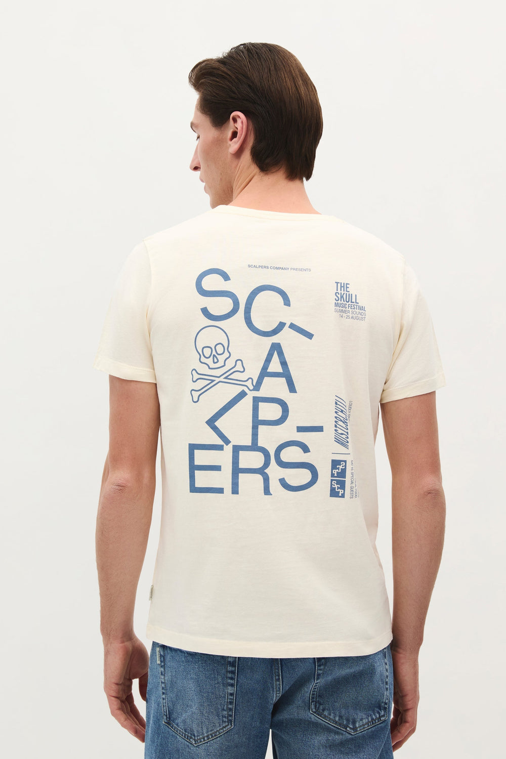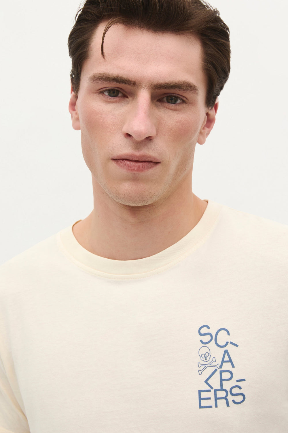 Camiseta con print de logo y calavera trasera y en pecho confeccionada en 100% algodón BCI. Regular fit, cuello redondo y manga corta