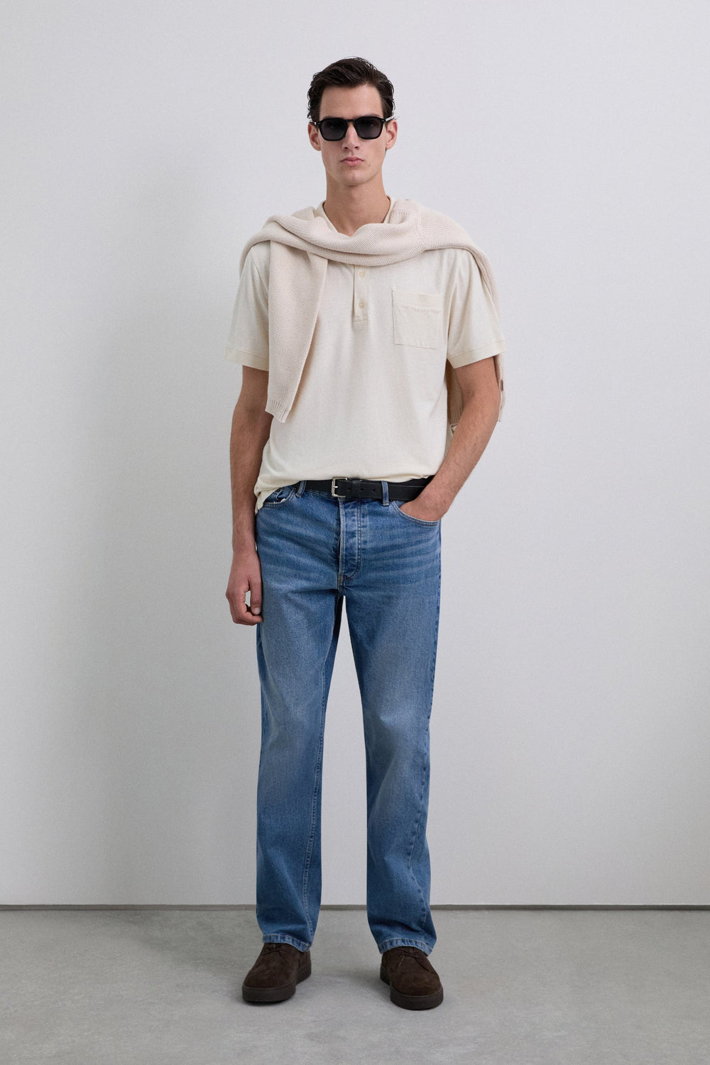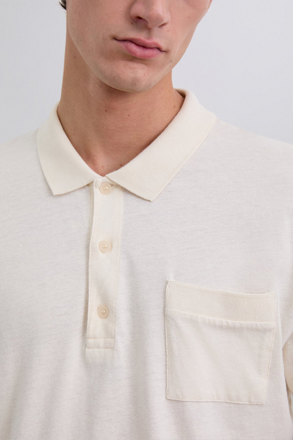 Polo confeccionado en mezcla de algodón y lino. Manga corta. Regular fit. Cuello con cierre de 3 botones. Detalle con bolsillo de parche de punto en el pecho.