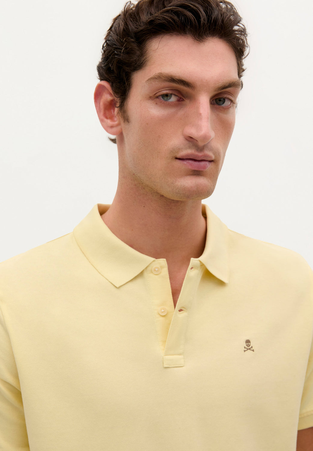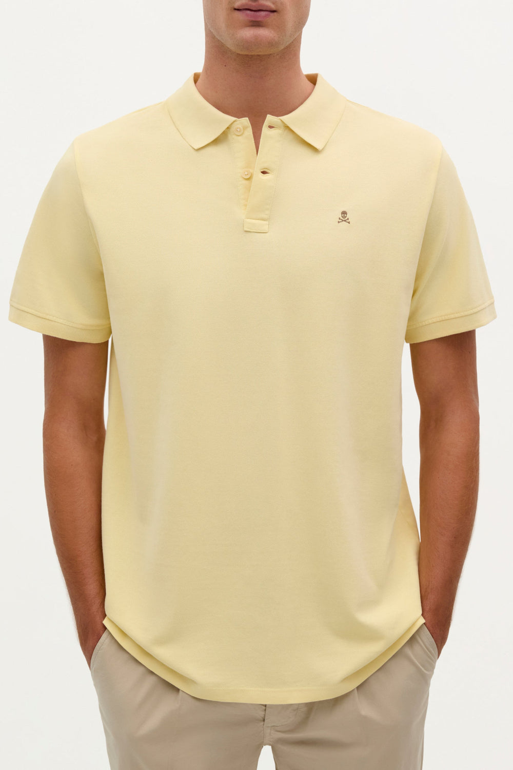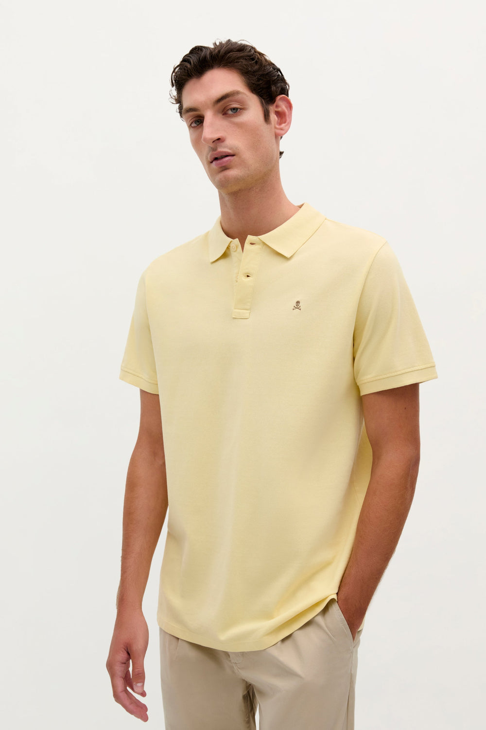 Polo confeccionado en 100% algodón BCI. Regular fit, cuello clásico y calavera a contraste.