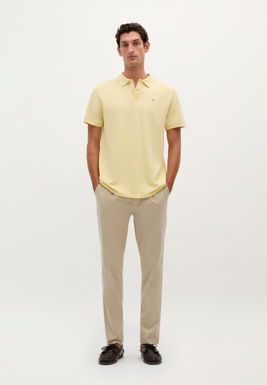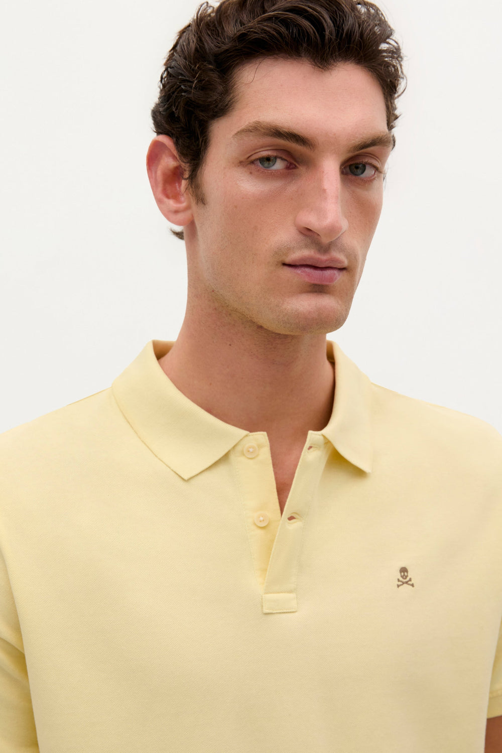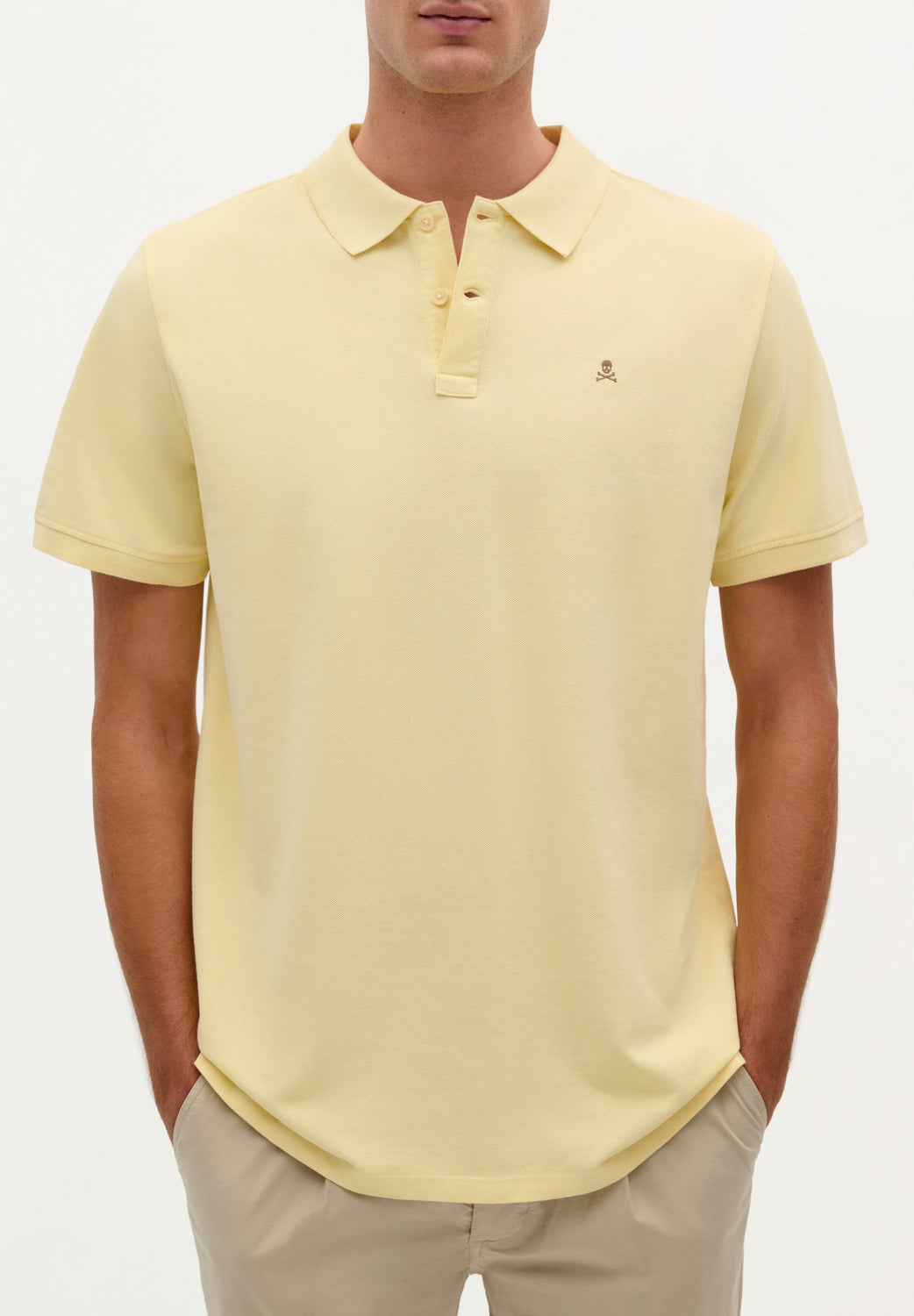 Polo confeccionado en 100% algodón BCI. Regular fit, cuello clásico y calavera a contraste.