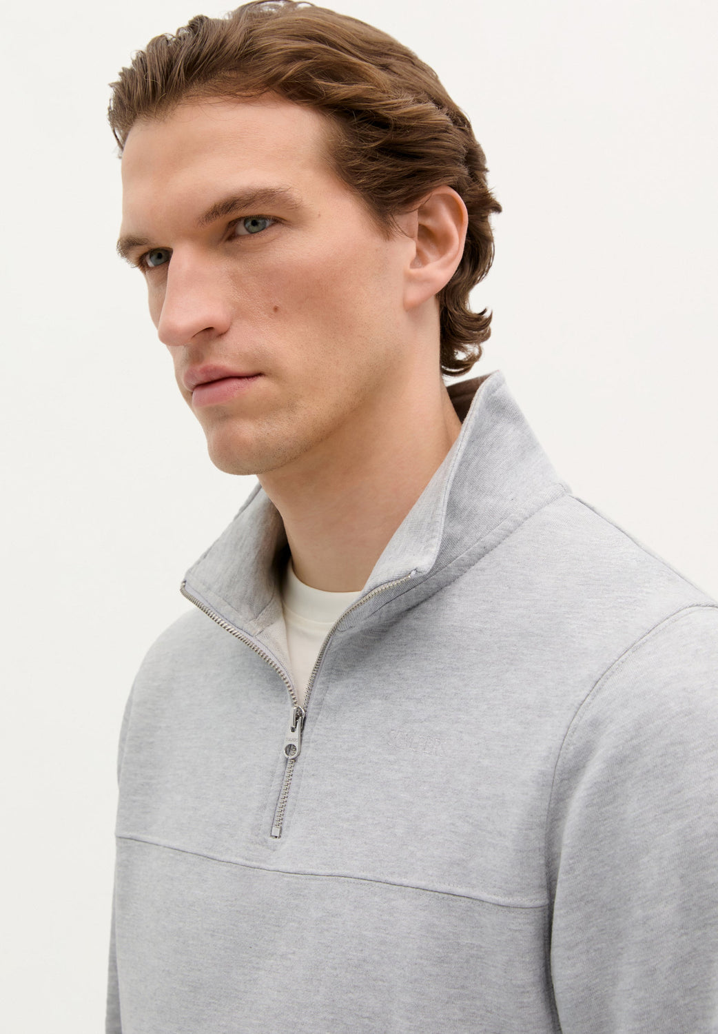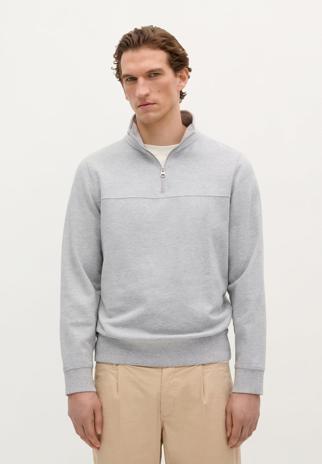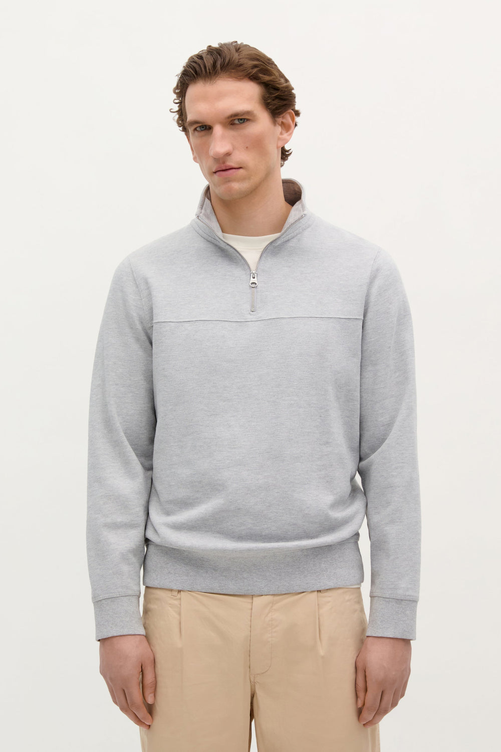 Sudadera con canesú en pecho. Confeccionado en 100% Algodón BCI. Corte Regular fit. Cuello subido. Cierre con cremallera. Manga larga con puños acabados en rib.