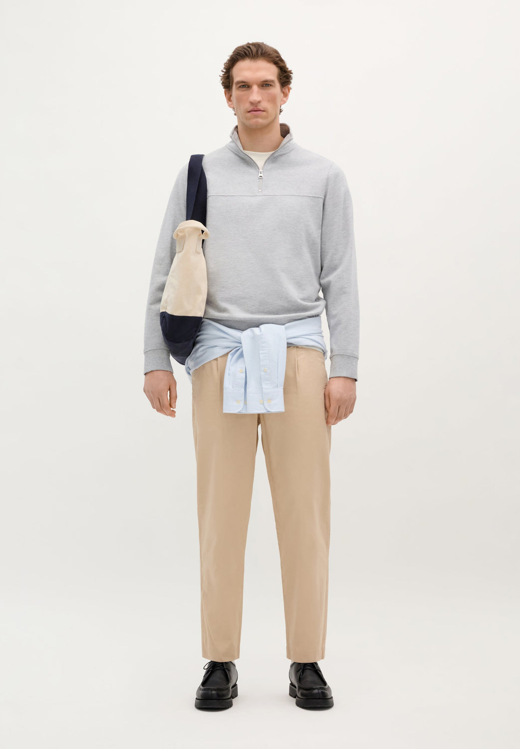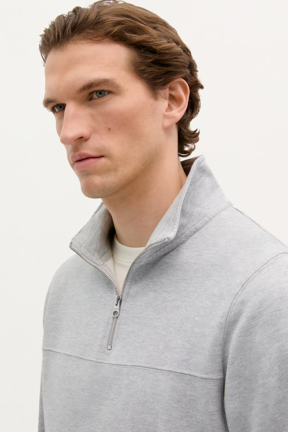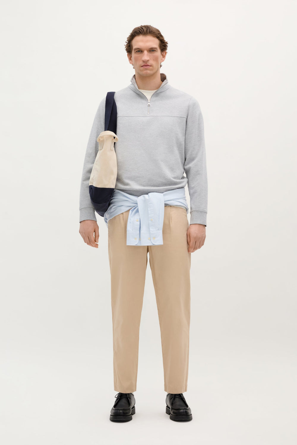 Sudadera con canesú en pecho. Confeccionado en 100% Algodón BCI. Corte Regular fit. Cuello subido. Cierre con cremallera. Manga larga con puños acabados en rib.