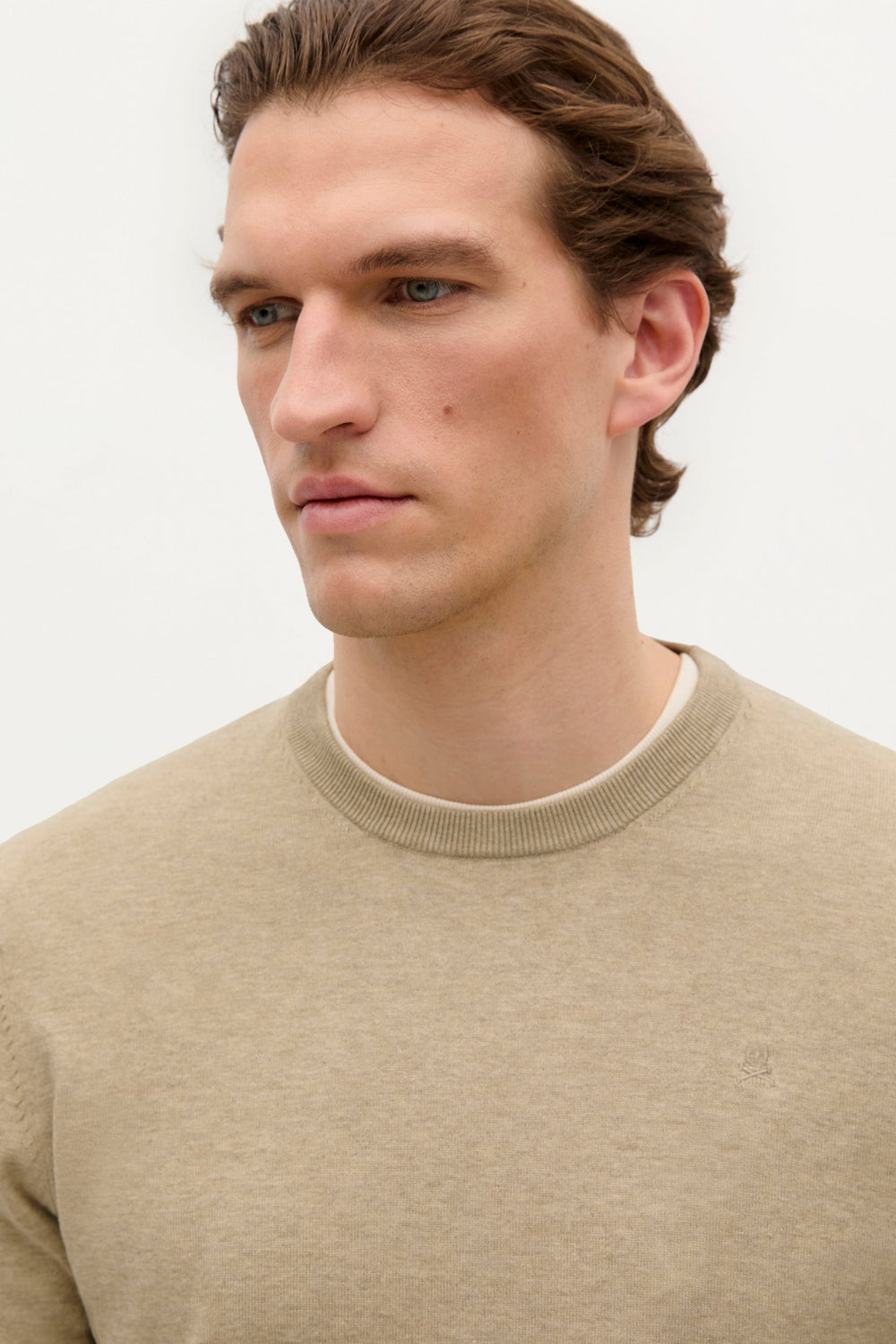 Jersey de punto con calaverar bordada en pecho a tono. Confeccionado en 100% Algodón BCI. Corte Regular fit. Cuello redondo. Manga larga. Acabados en rib.
