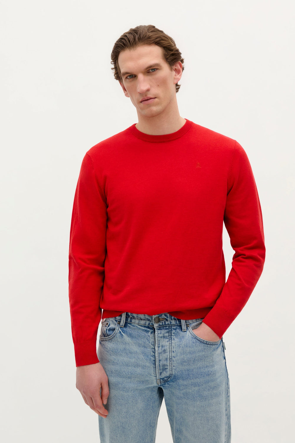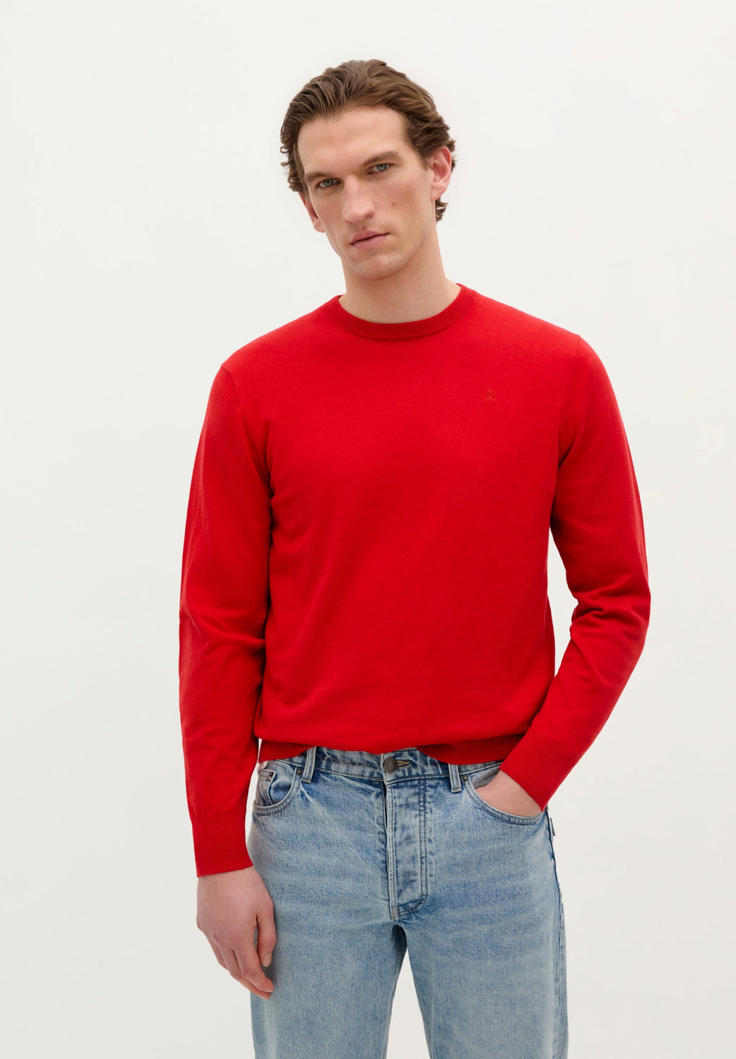 Jersey de punto con calaverar bordada en pecho a tono. Confeccionado en 100% Algodón BCI. Corte Regular fit. Cuello redondo. Manga larga. Acabados en rib.