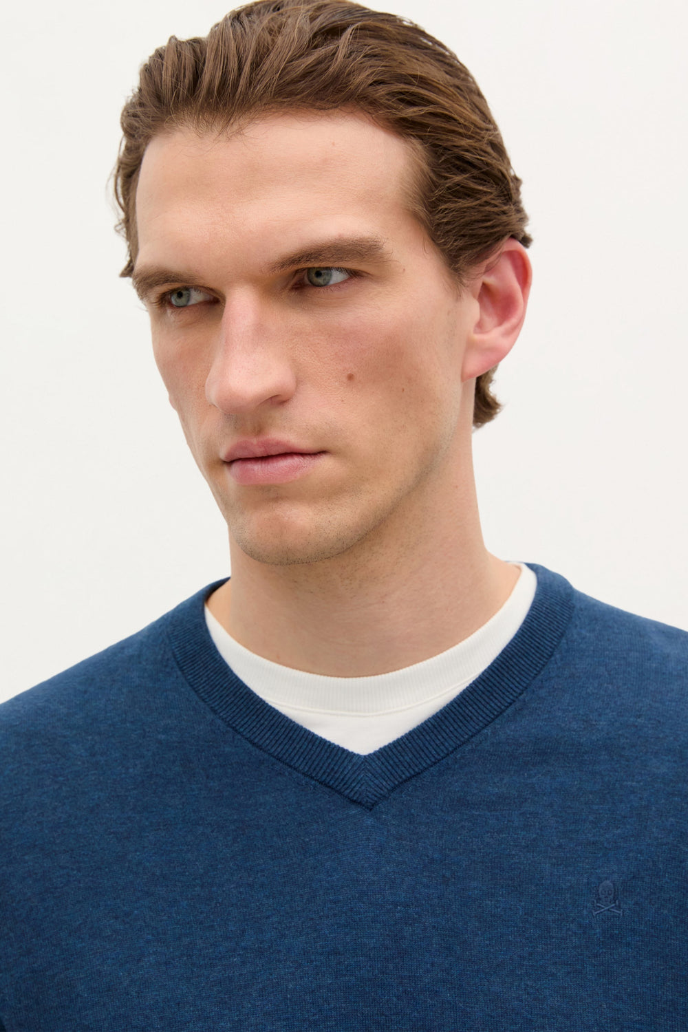 Jersey con calavera bordada a tono. Confeccionado en algodón 100%. Corte Regular Fit. Cuello de pico. Manga larga.
