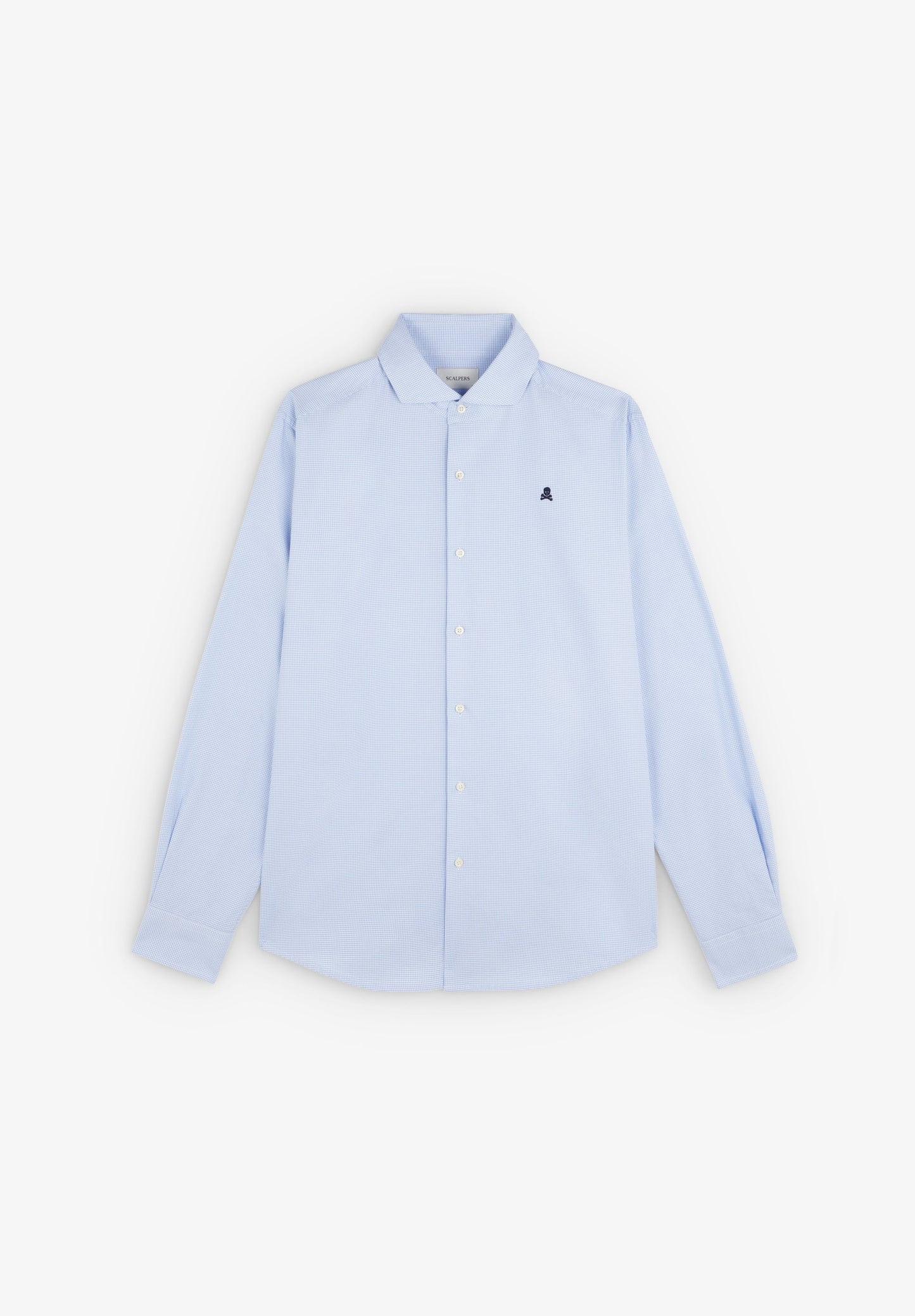 Camisa de cuadros confeccionada en 100% algodón. Regular fit, cuello italiano y cierre con botones. Manga larga terminada en puño con botones.