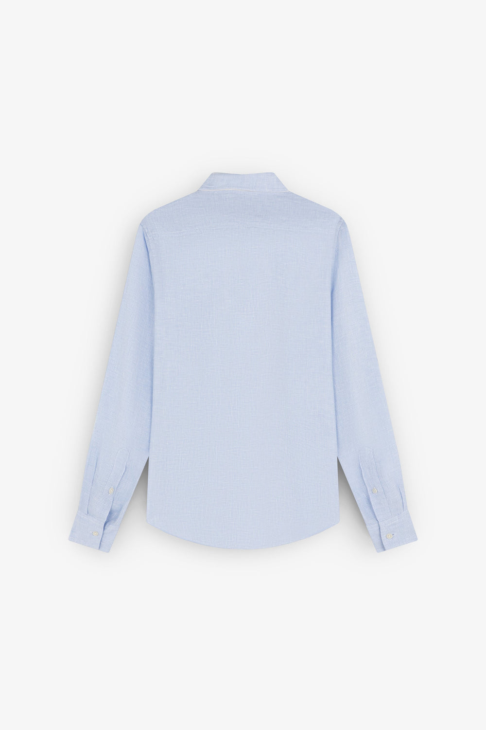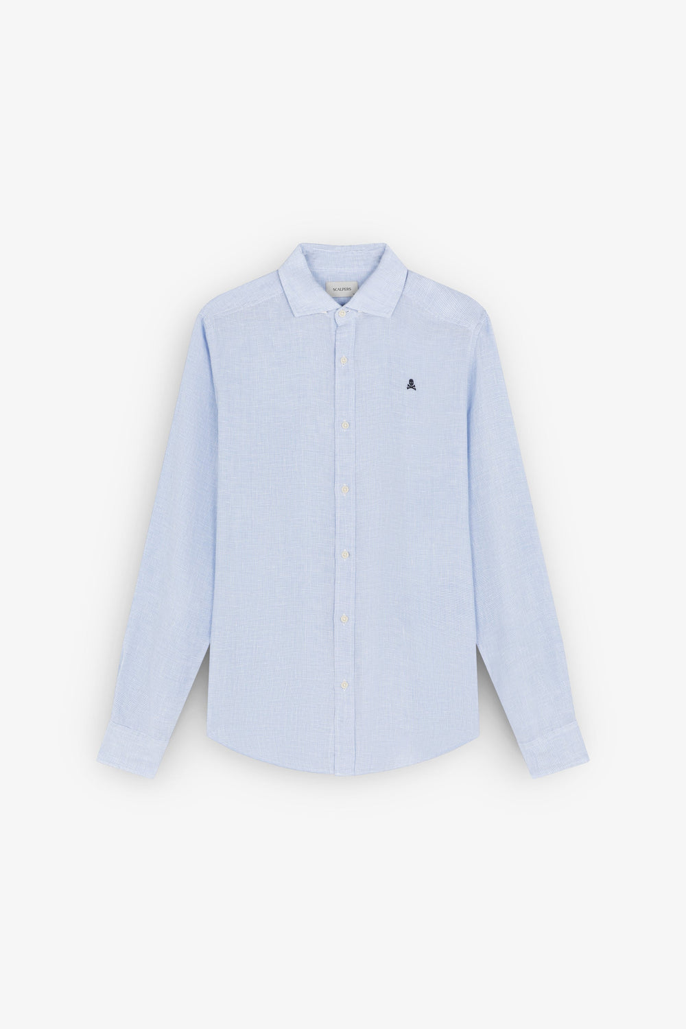 Camisa confeccionada en tejido 100% Lino. Manga larga. Cierre mediante abotonadura frontal. Cierre en puños ajustable mediante botón. Monograma bordado en parte frontal. Detalle de etiqueta con logo en lateral.