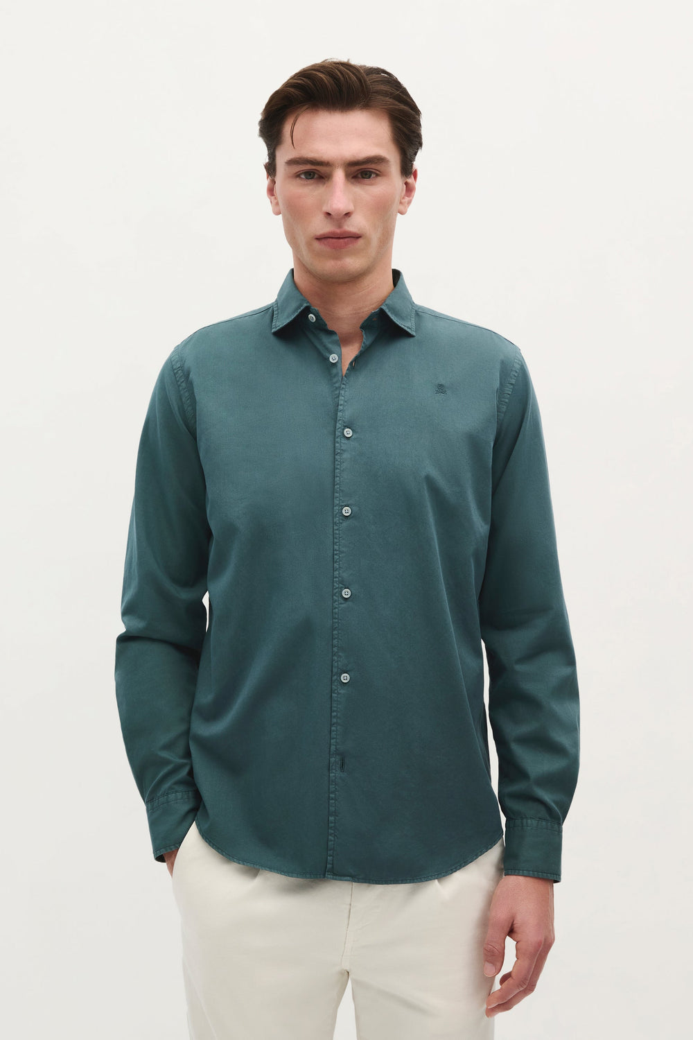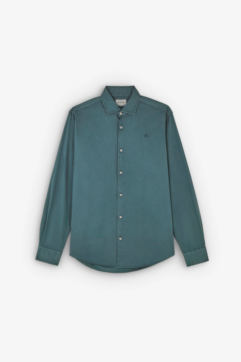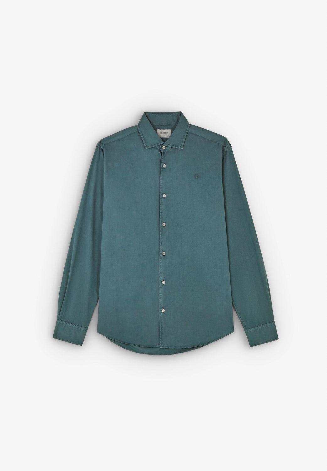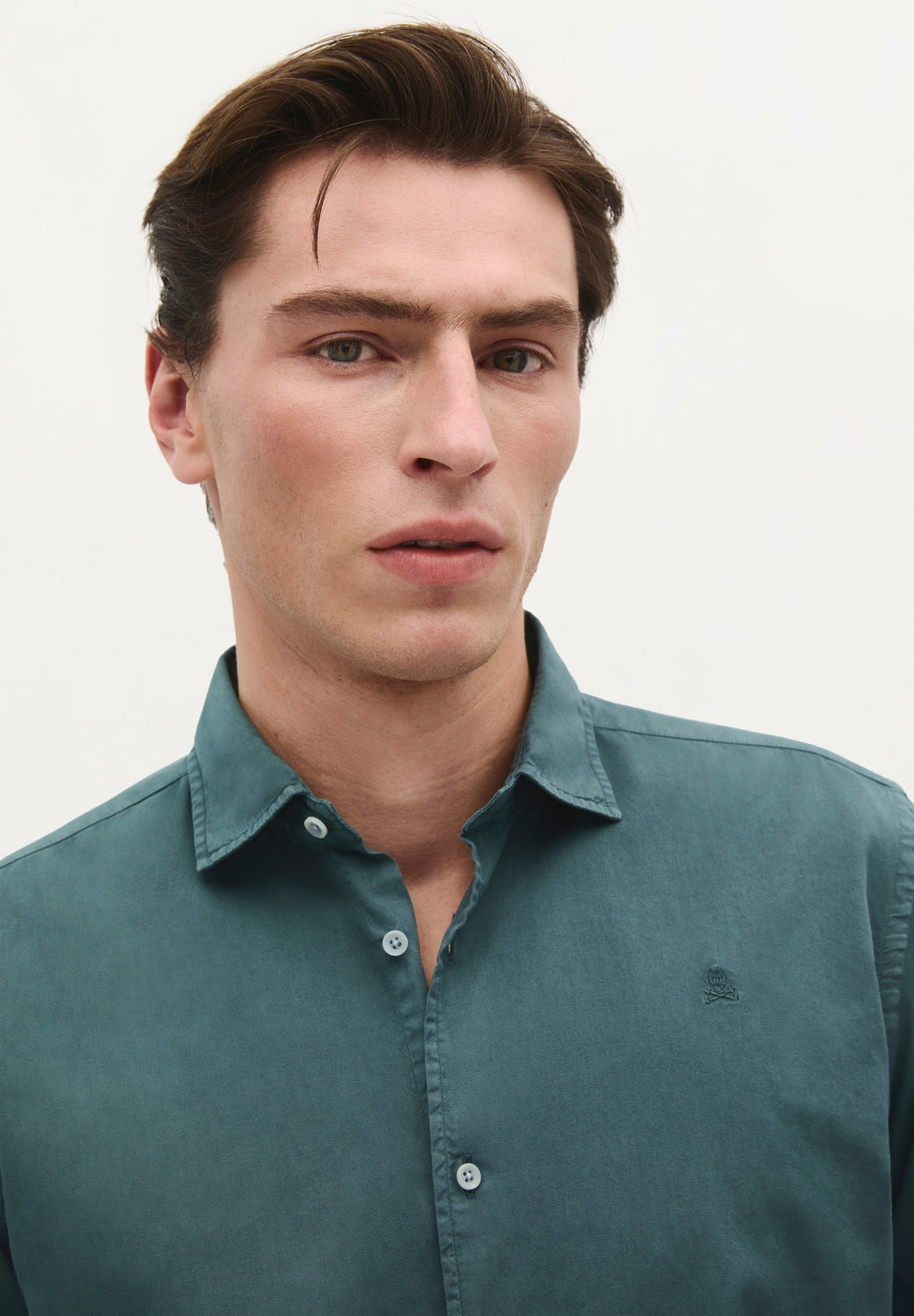Camisa confeccionada en 100% algodón. Regular fit, cuello clásico y cierre con botones. Manga larga terminada en puño con botones y calavera bordada a tono.