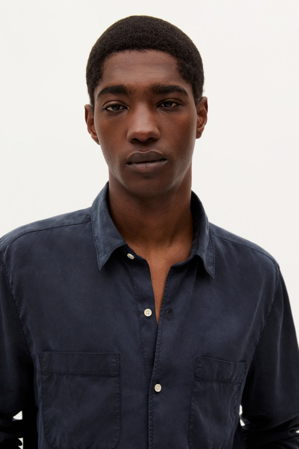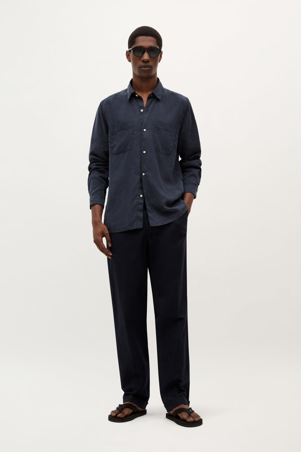 Camisa confeccionada en Lino. Manga larga. Dos bolsillos en parte frontal. Puños ajustables por botones. Cierre mediante abotonadura frontal.