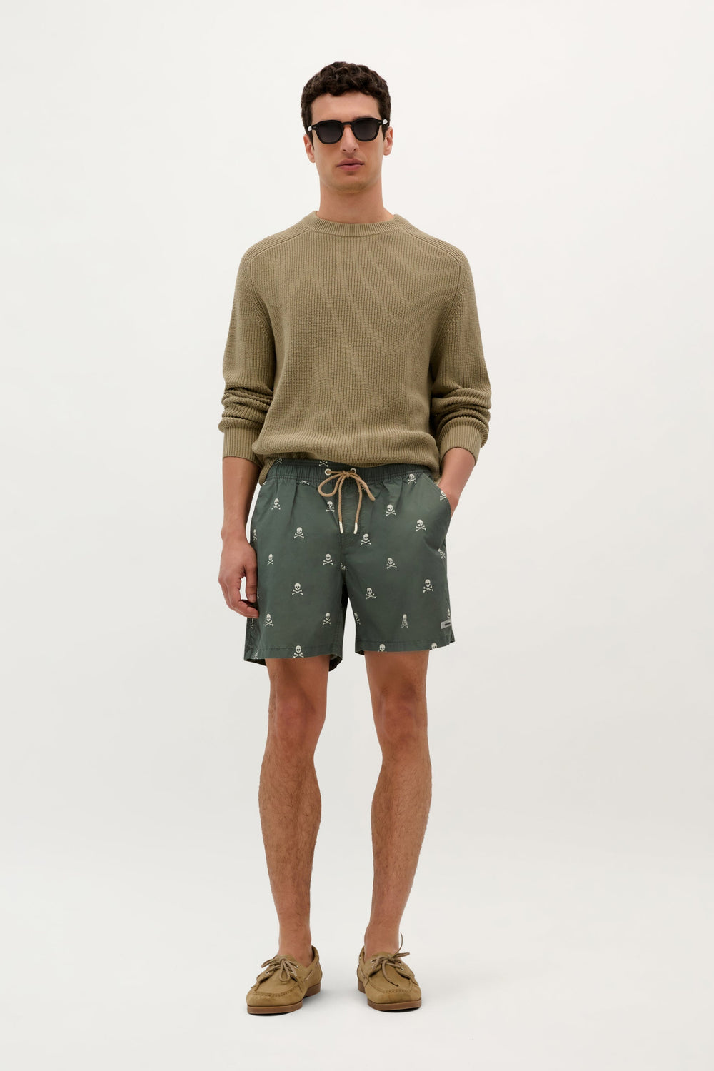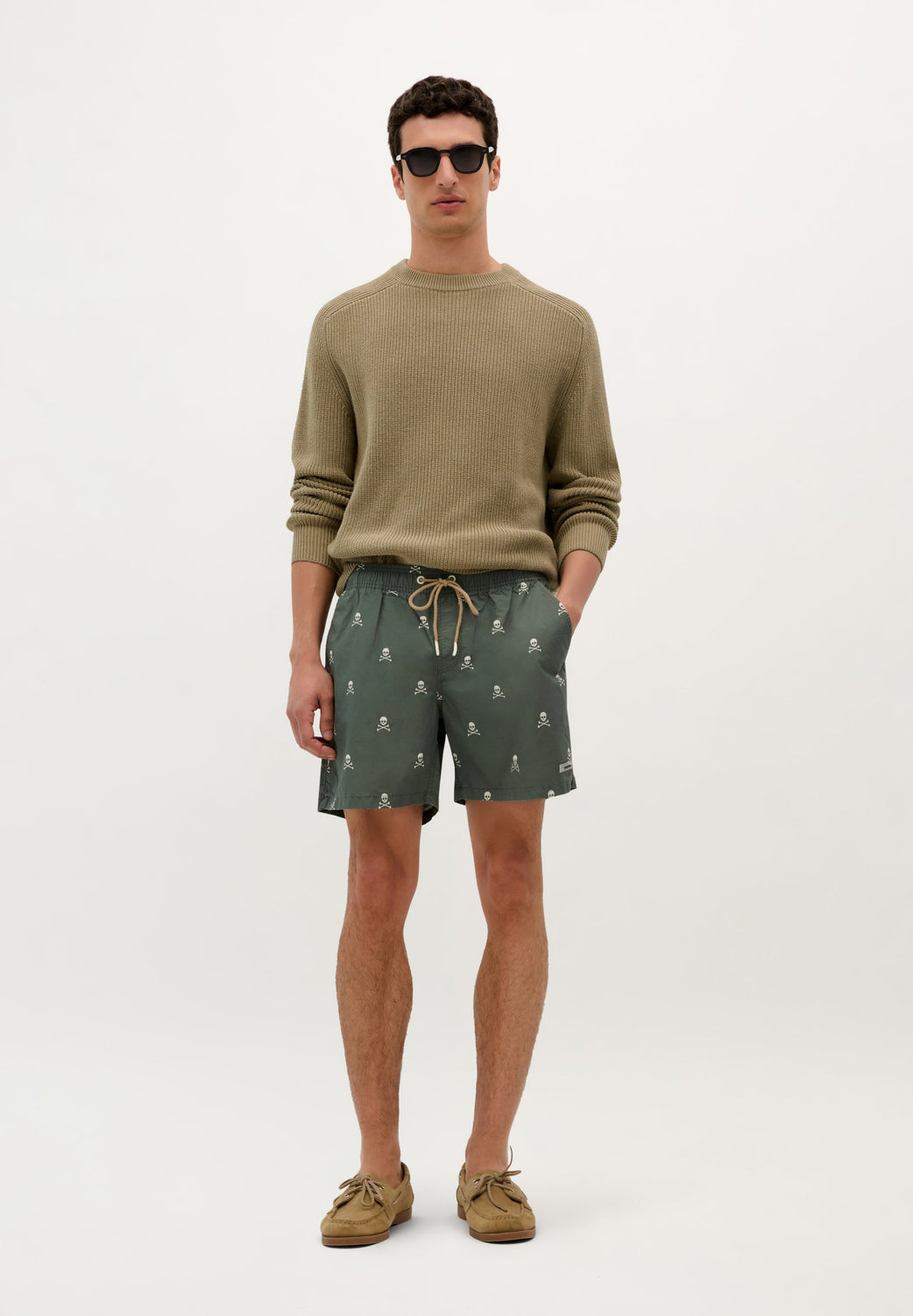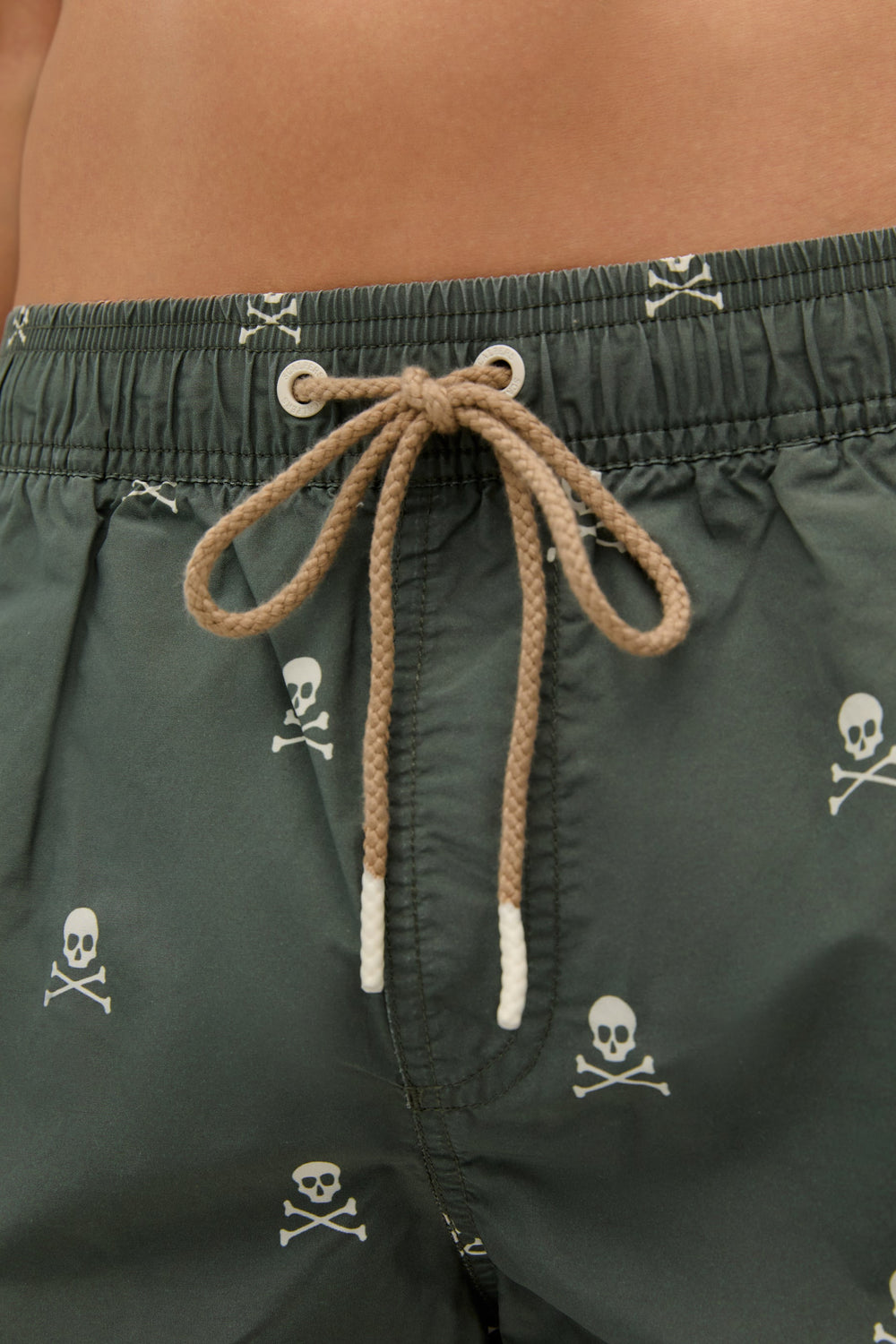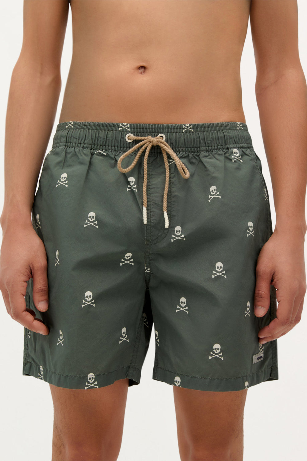 Bañador confeccionado en Algodón y Nailon. Cintura elástica ajustable con cordón. Diseño de monograma impreso con acabado mate. Rejilla interior. Bolsillos laterales y trasero con cierre por velcro. Detalle de logo engomado en frontal izquierdo.