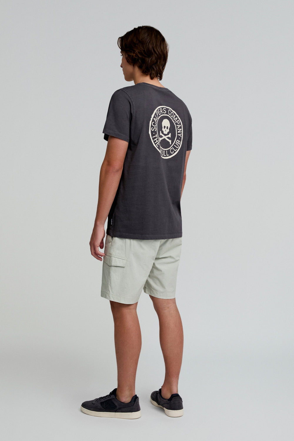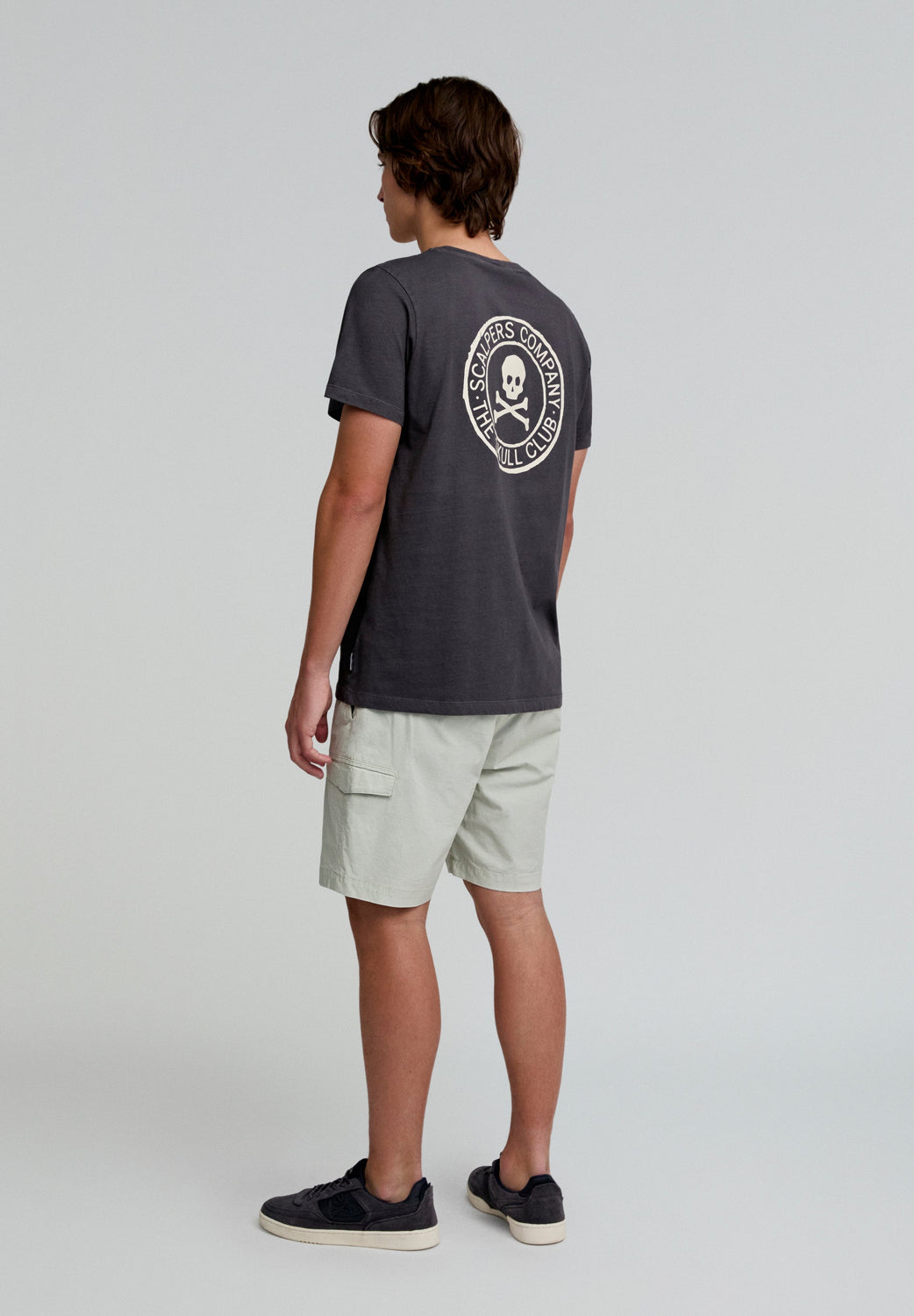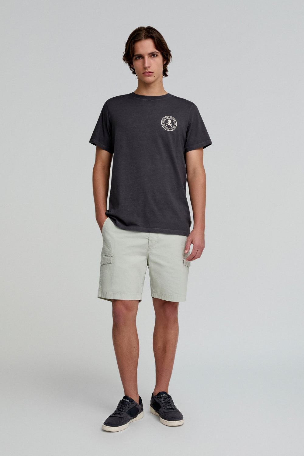 Bermuda cargo efecto lavado. Confeccionada en algodón orgánico. Corte Regular fit. Cierre con botón y cremallera. Bolsillos laterales. Bolsillos en pernera de parche con solapa y cierre con snaps. Bolsillos trasero de parche. Trabillas en cintura. Detalle de calavera bordada a tono.