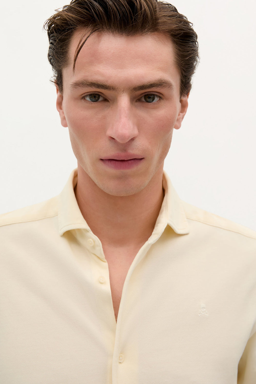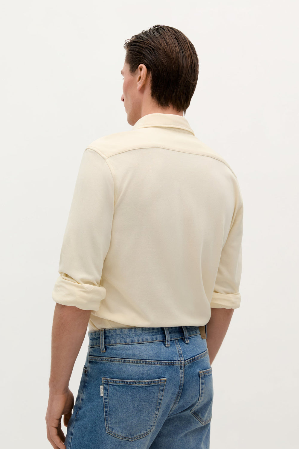 Camisa confeccionada en 100% Algodón Orgánico BCI. Cierre por abotonadura en frontal. Manga larga. Puños ajustables mediante botón. Monograma a tono en parte delantera.