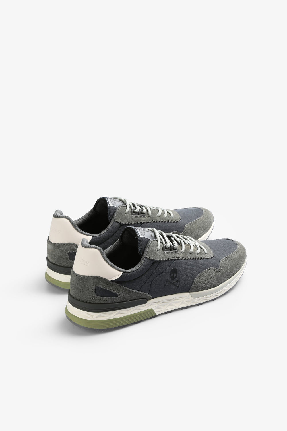 Sneakers con calavera lateral a contraste confeccionadas en ante y nylon. Cierre con cordones a tono, suela de eva y TPR y detalle en lengüeta de etiqueta personalizada.