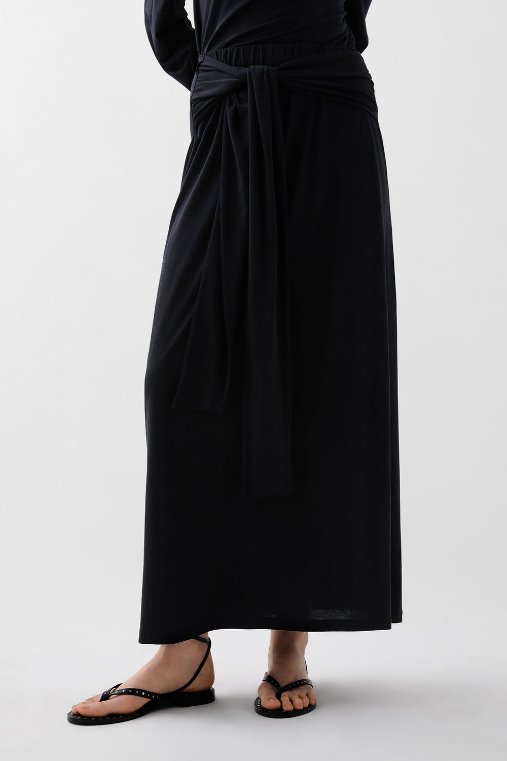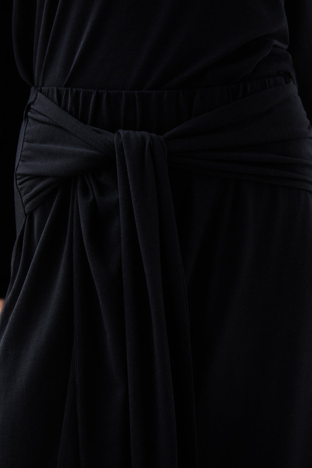 Falda midi con detalle de nudo con lazadas en delantero y bajo acabado en línea evasé