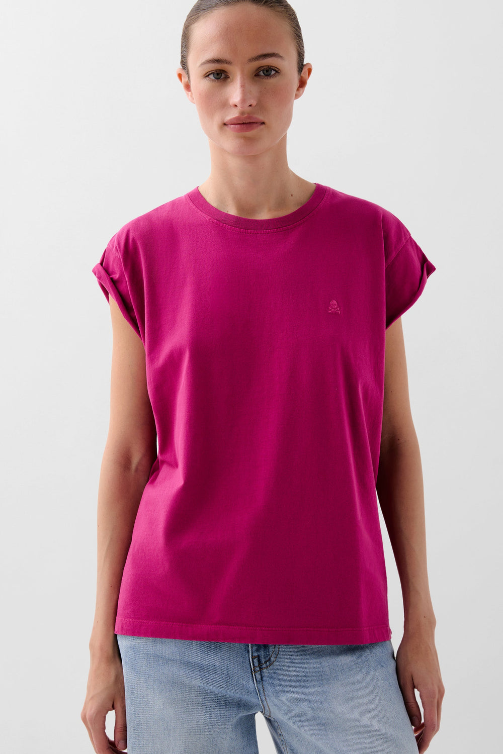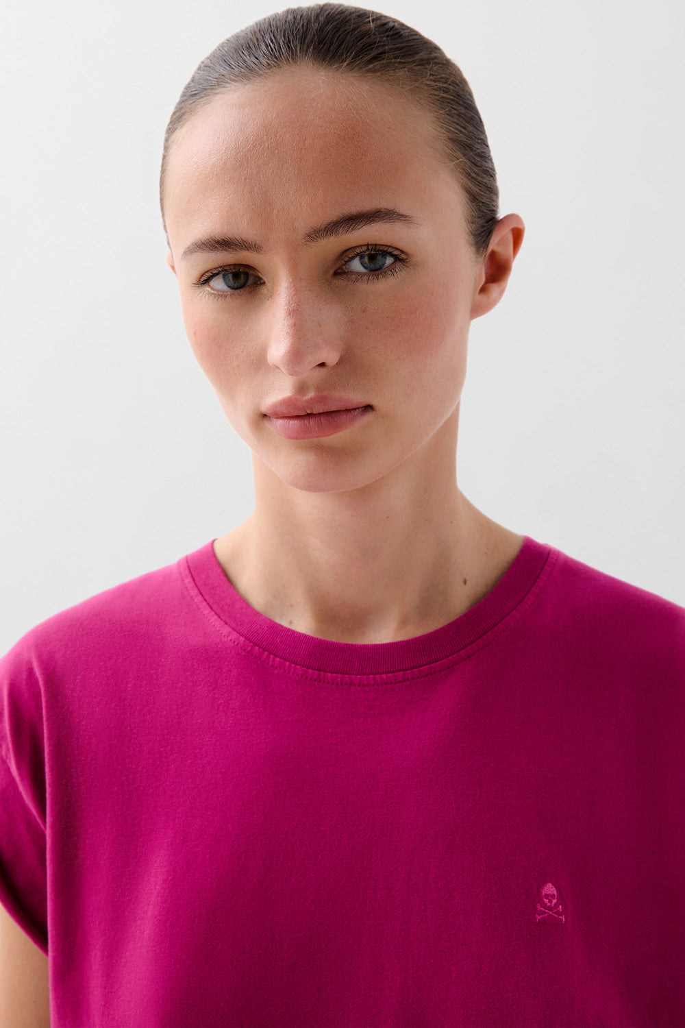Camiseta confeccionada en 100% algodón BCI. Regular fit, cuello redondo y manga corta. Detalle de calavera bordada a tono.