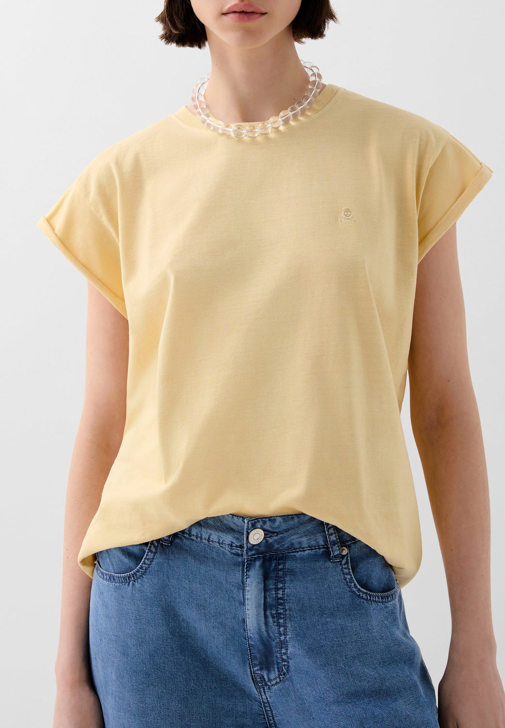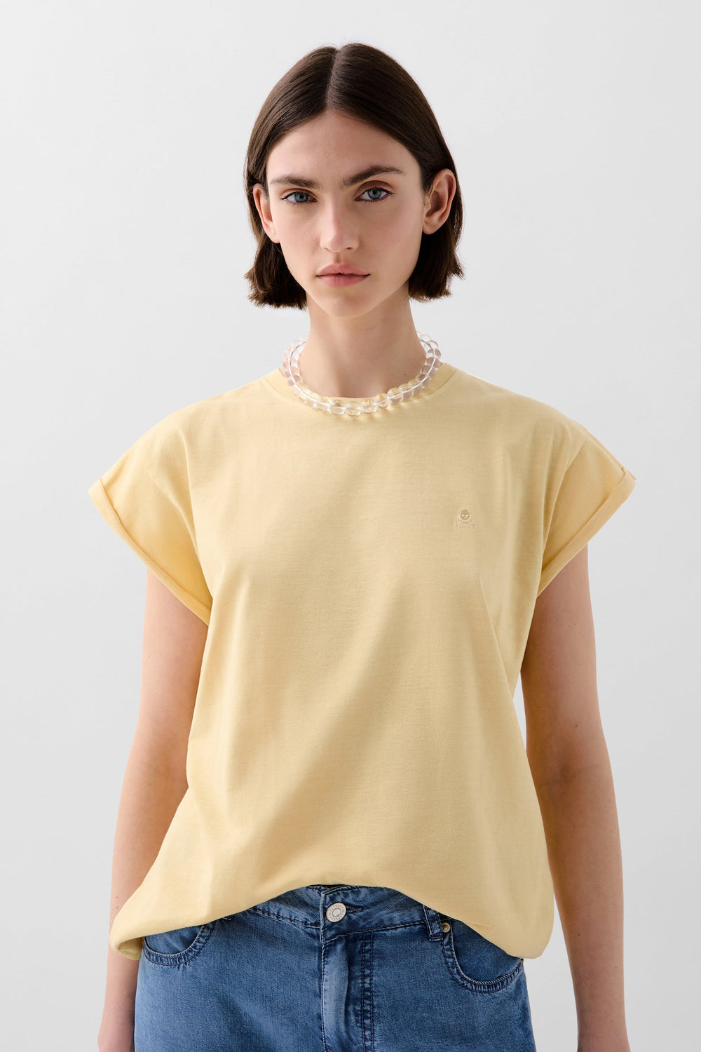 Camiseta confeccionada en 100% algodón BCI. Regular fit, cuello redondo y manga corta. Detalle de calavera bordada a tono.